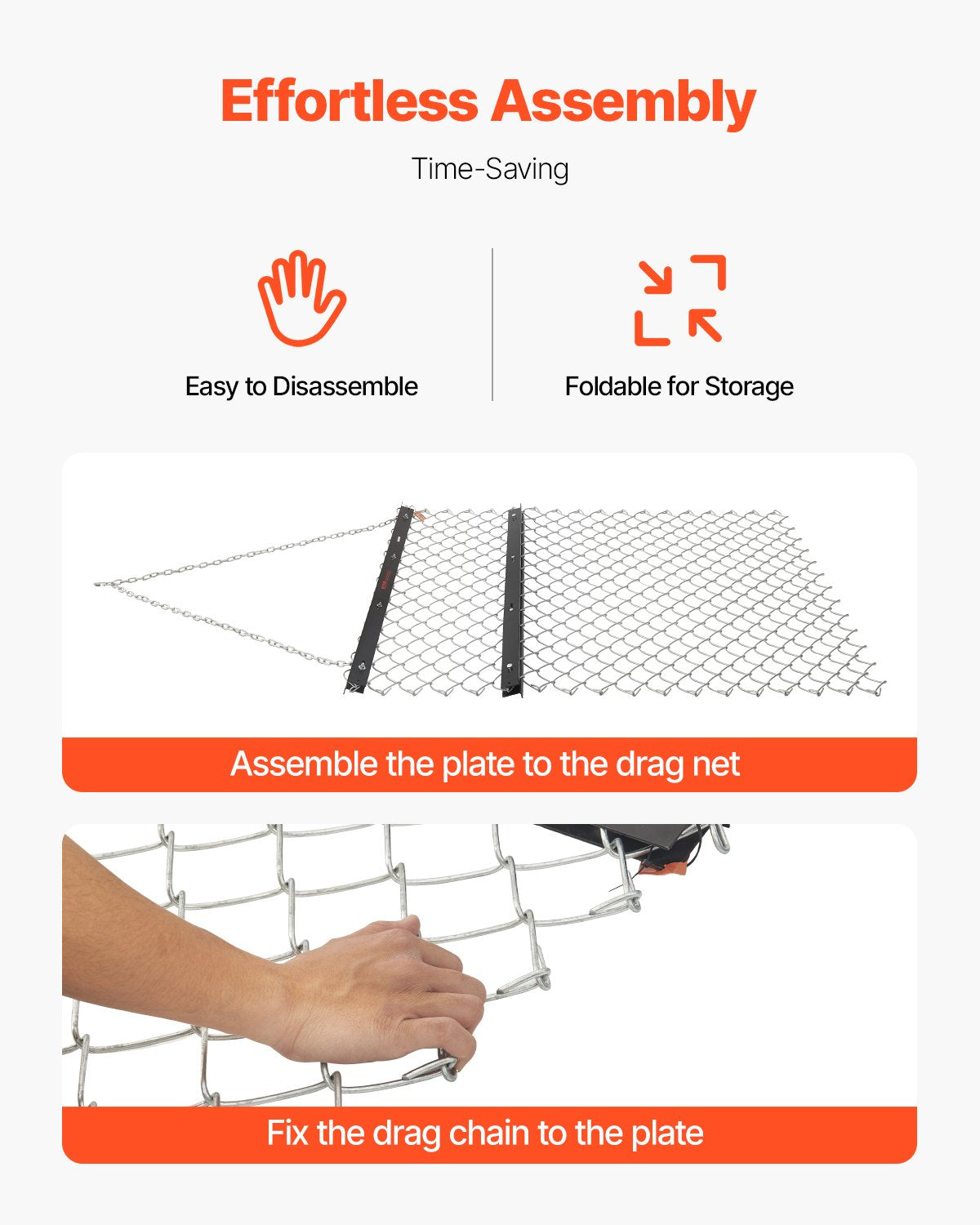 - Remarkable Leveling Effect: Easily break up clumps and smooth uneven surfaces with the chain harrow for efficient land leveling.