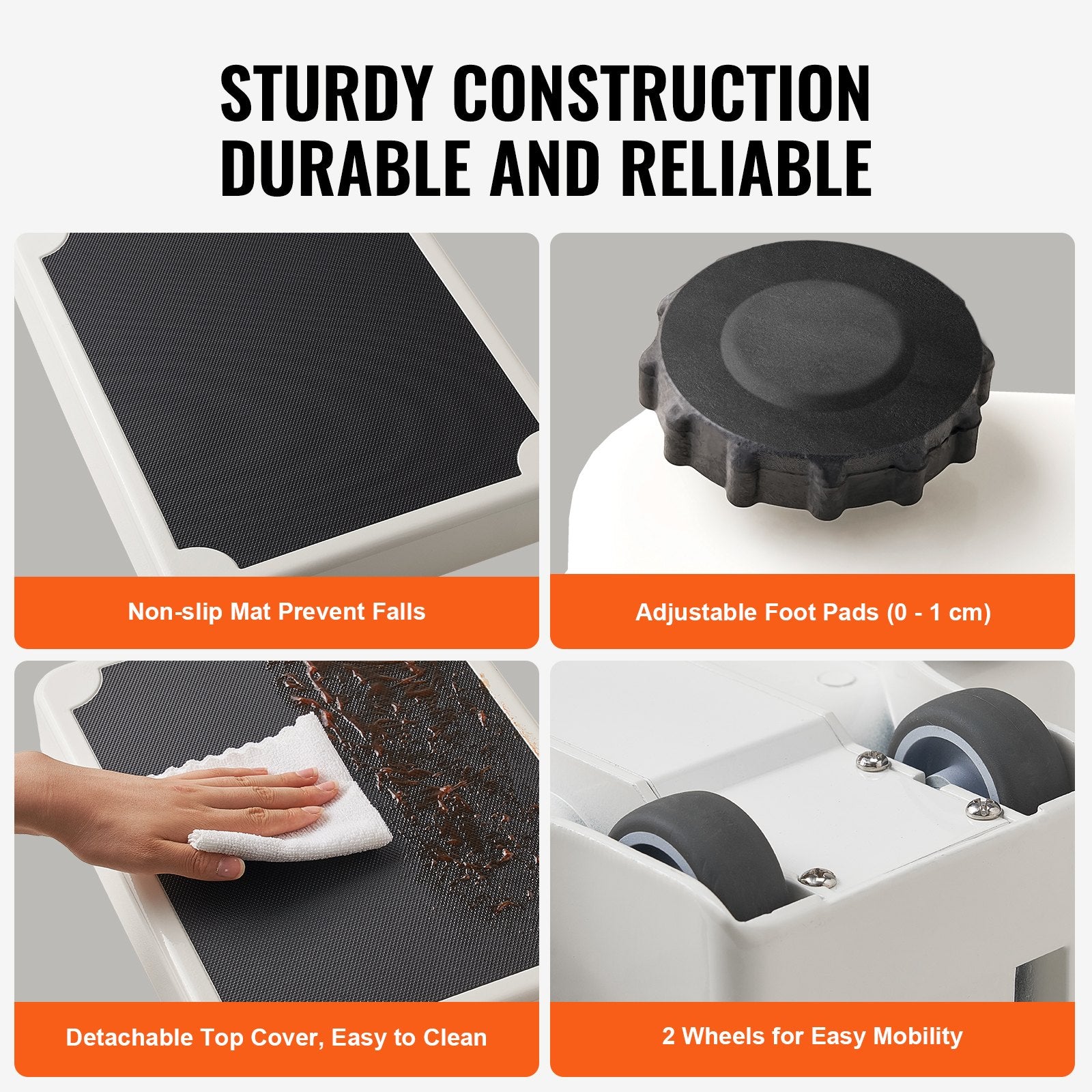 - Robust och flyttbar: Prioritera användarsäkerheten med vår halkfria matta, som ger en stabil plattform och förhindrar oavsiktliga halkningar. Justerbara fötter (0-1 cm) anpassar sig till olika ytor för exakt mätning, och 2 hjul möjliggör enkel förflyttning.
