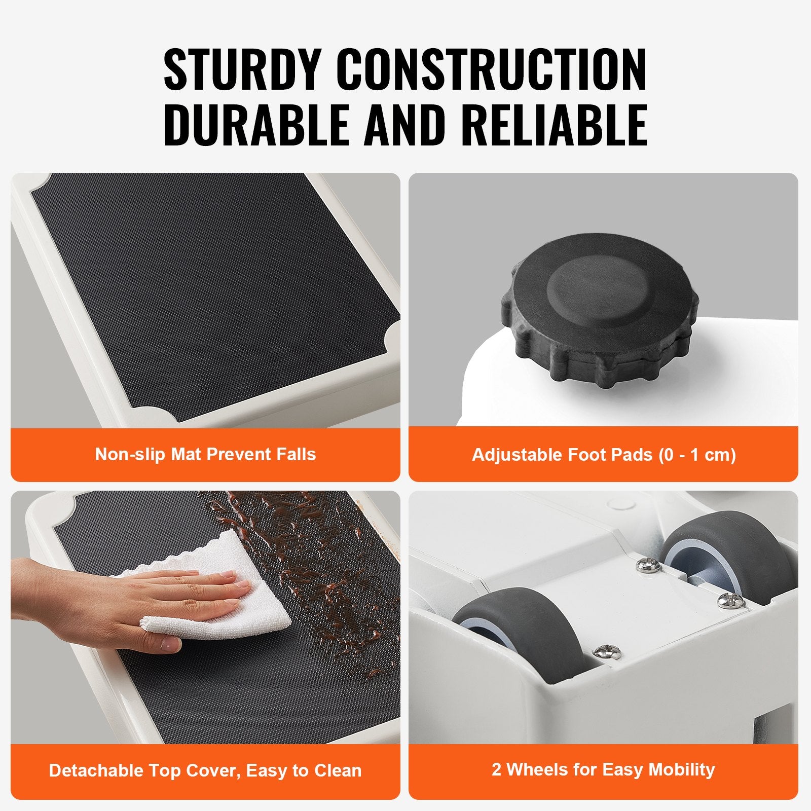 - Robust och flyttbar: Prioritera patientsäkerheten med vår halkfria matta, som ger en stabil plattform och förhindrar oavsiktliga halkningar. Justerbara fötter (0-1 cm) anpassar sig till olika ytor för exakt mätning, och 2 hjul möjliggör enkel förflyttning.