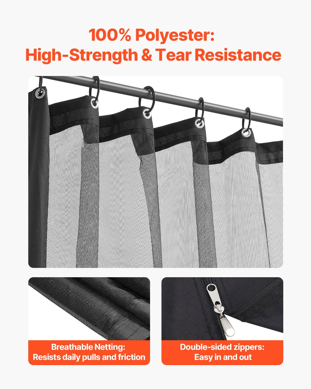 - Genomtänkt design: Varje sida har dubbelsidiga dragkedjor för enkel åtkomst. Nätnätets kanter är utrustade med fästremmar upptill, i mitten och nedtill, med aluminiumöljetter för enkel upphängning och rivmotstånd. Vi erbjuder både plastkrokar och upphängningsringar som monteringsalternativ, så att du kan välja den bästa metoden för att fästa nätet på din paviljong.