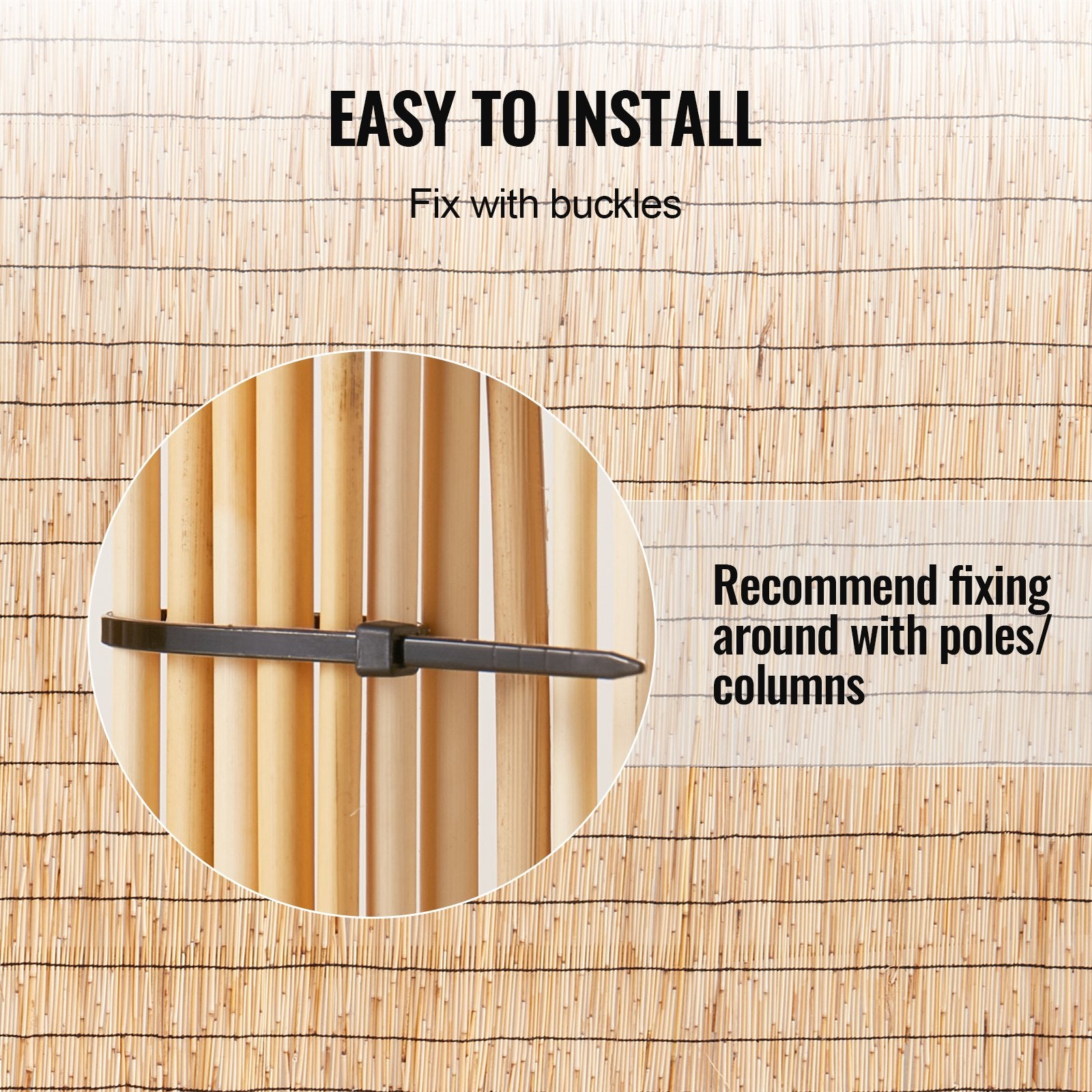 - Easy Installation: This kit includes one natural reed fence panel (16.4 x 5.5 ft) and 100 zip ties. One person can easily attach the fence to any rail or post. Make sure to measure your space accurately before buying. For a smooth installation, we recommend wearing gloves as there might be slight burrs on the surface.