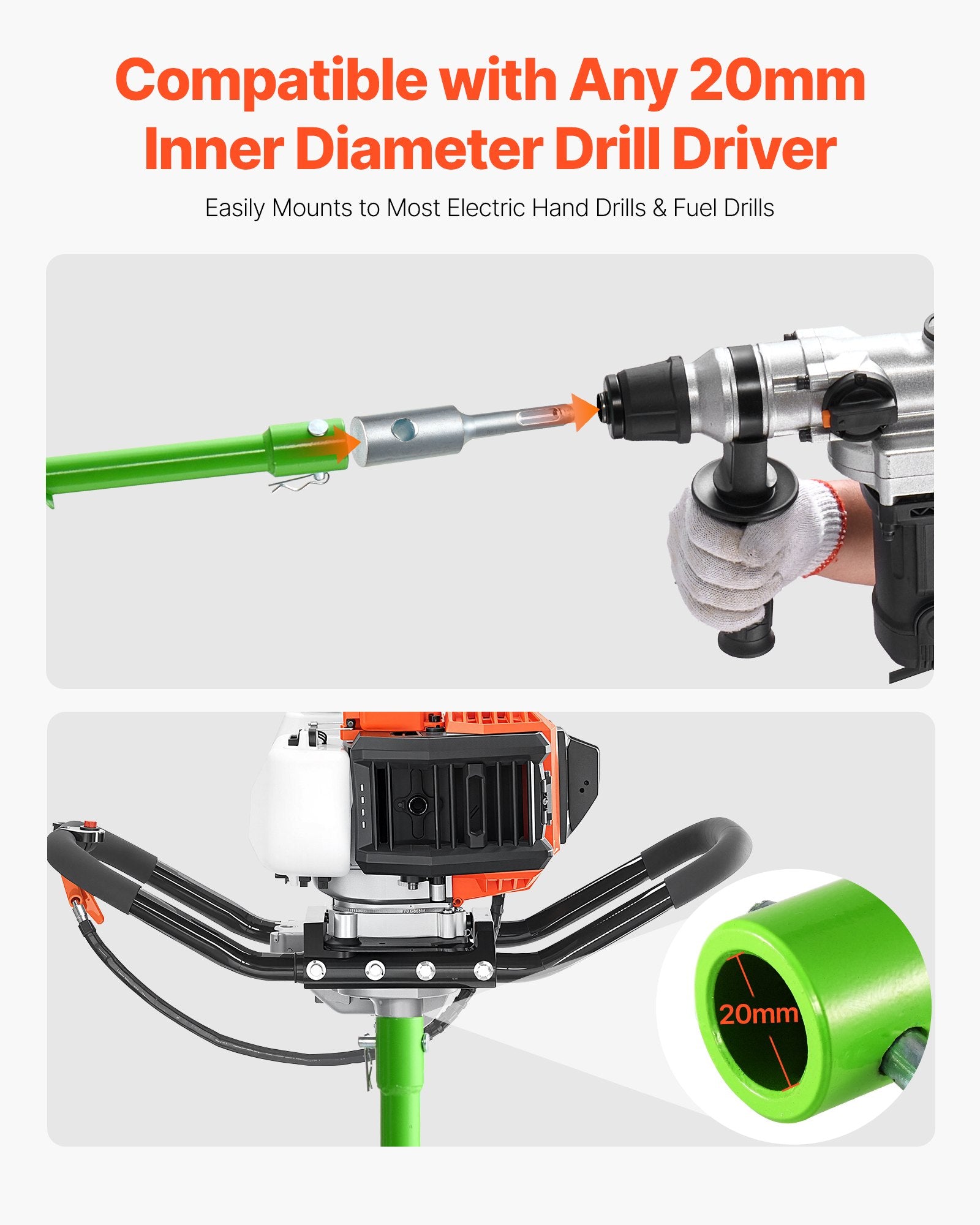 - Bred kompatibilitet: Vårt spiralborr är utformat för att passa alla borrar med en chuckdiameter på 20 mm eller mindre. Fäst bara borret på en vanlig elektrisk eller bensindriven borr och kom igång direkt. Inkluderar en adapter för flexibel användning med olika borrar.