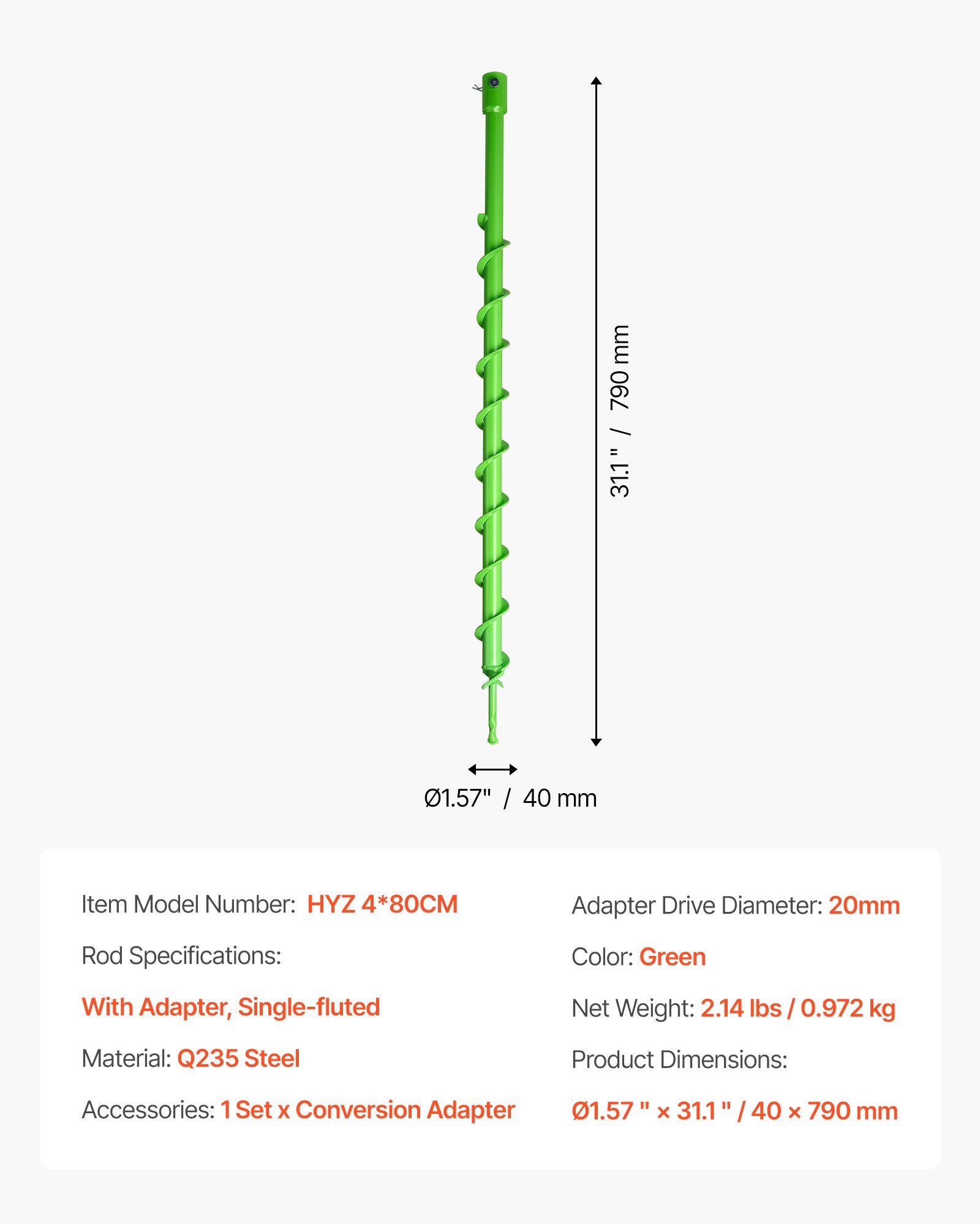 - Mångsidig storlek: Med en diameter på 40 mm (1,57 tum) och en längd på 790 mm (31,1 tum) är borrskruvar för att gräva hål perfekta för att plantera lökar och blommor i olika storlekar för att passa dina olika trädgårdsbehov.