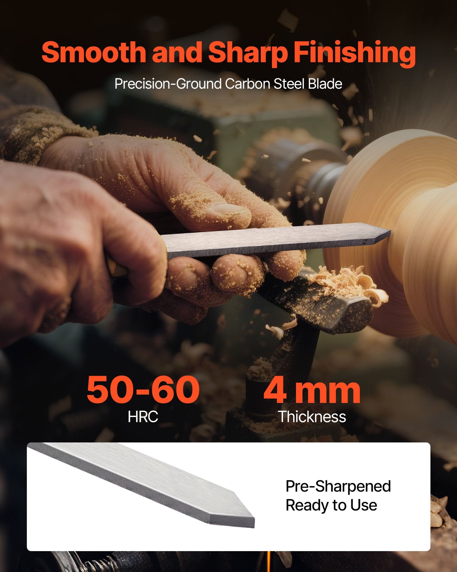 - Slipade kolstålsblad: Dessa träsvarvverktyg med kolstålsblad är exceptionellt vassa för effektiva, jämna snitt, perfekta för fina detaljer. Förslipade före leverans utan ytterligare slipning, perfekt för nybörjare.