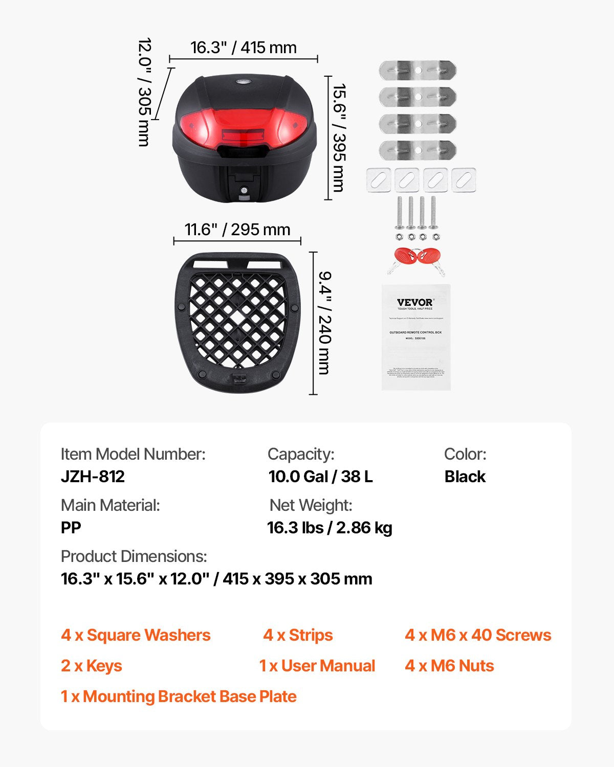 - 38L Large Capacity: The 38L motorcycle tailbox provides enough space for a full helmet, small backpack, gloves, umbrella, and rain gear, ideal for daily commutes or short-distance rides. It comes with a sturdy zinc alloy security lock for added theft guard.
