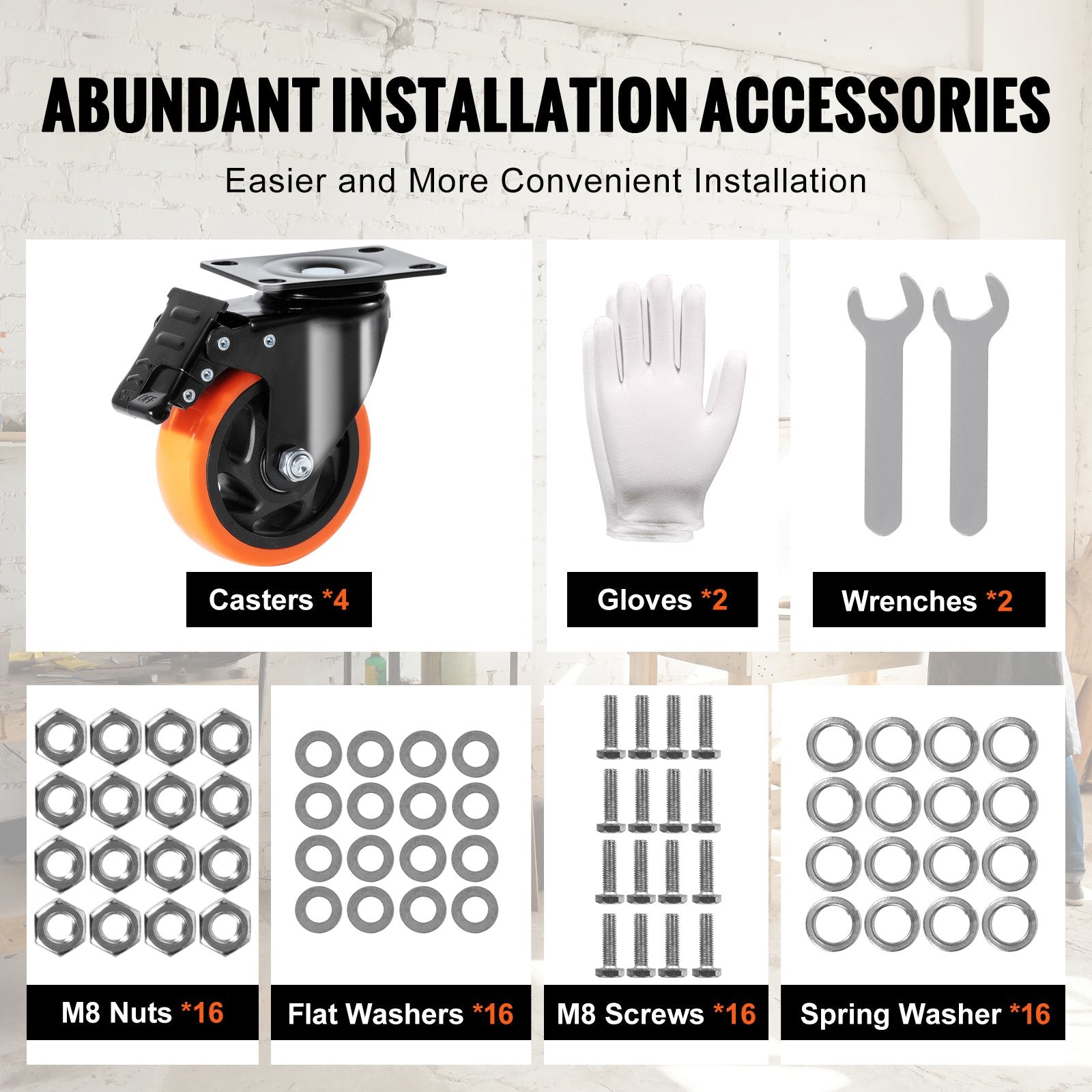 - Byggd som en stridsvagn, utan vikten: Glöm mesiga hjul. Våra kraftiga hjul levereras med ett kraftigt stålfäste. Den förtjockade designen förbättrar deras styrka och hållbarhet ytterligare. Klarar upp till 1400 pund med 4 hjul? Javisst!