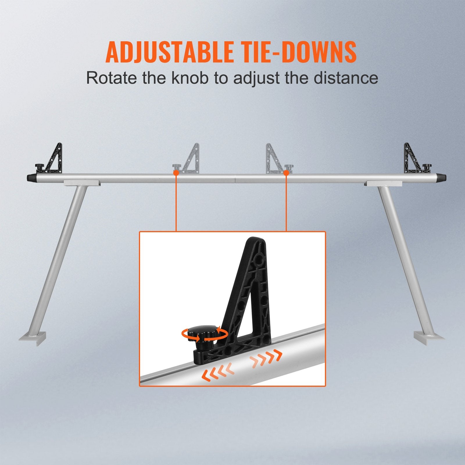 Lastbilsställ, kapacitet 360 kg, 193 cm x 80 cm aluminium stegställ för lastbil med 8 borrfria C-klämmor, kraftigt lastbilsflakställ med två stänger för kajak, surfbräda, virke, stege