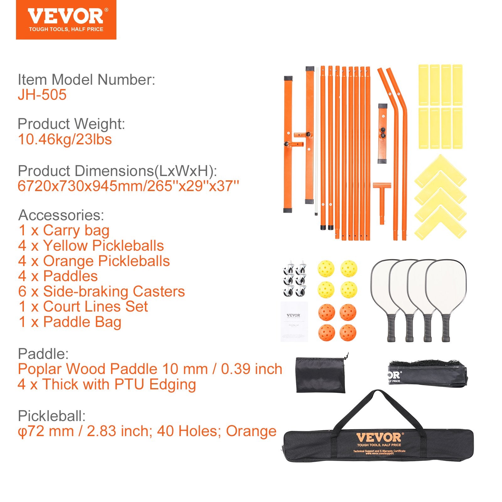 - Bärbar med hjul: Detta pickleballnät levereras med en bärväska i 600D PVC och 6 360° låsbara hjul för ökad portabilitet och bekvämlighet; Så att du kan spela utan platsbegränsningar och njuta av sport när som helst, var som helst. Lämplig för idrottsplaner, privata trädgårdsgångar med mera. Med märkta komponenter och intuitiva instruktioner monterar du enkelt metallramen på några minuter. Använd kardborreband för att fästa nätet och kasta dig in i en omgång pickleball.