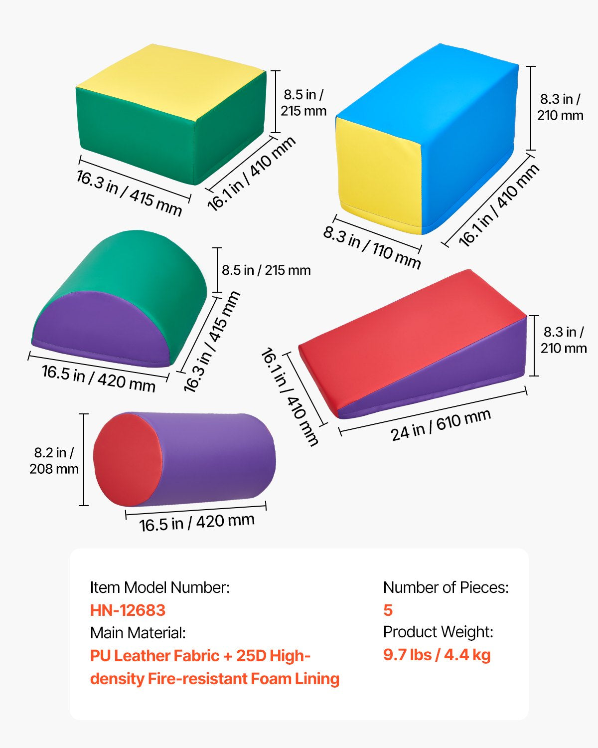 - Educational 5-Piece Set: This colorful and fun foam climbing blocks set is made up of various shaped foam blocks that stimulate color recognition and capture your child's attention. The different modules can be freely combined into various shapes, sparking imagination and creativity, keeping kids active. It's great for home, early education centers, and other settings, and makes an ideal gift for babies.