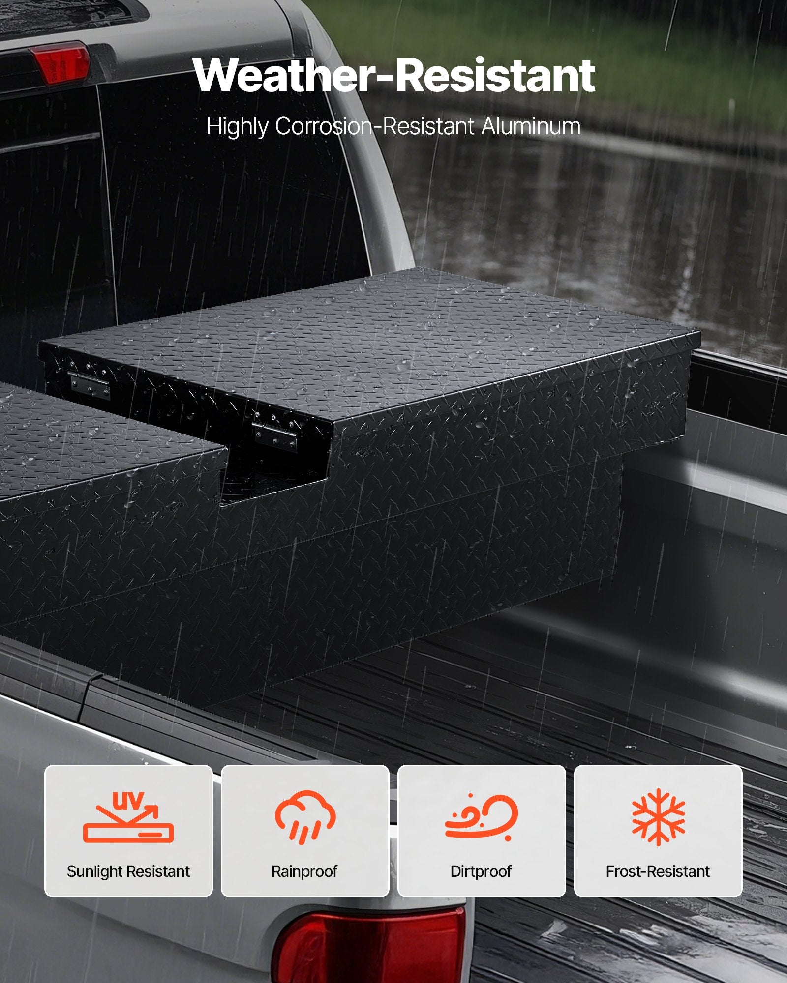 - Heavy-Duty & Durable: Crafted from 1.5mm (0.058 inch) thick aluminum, this truck bed toolbox is built to last, supporting up to 110 lbs (50 kg). The diamond plate surface adds rust and wear resistance, ensuring long-term durability