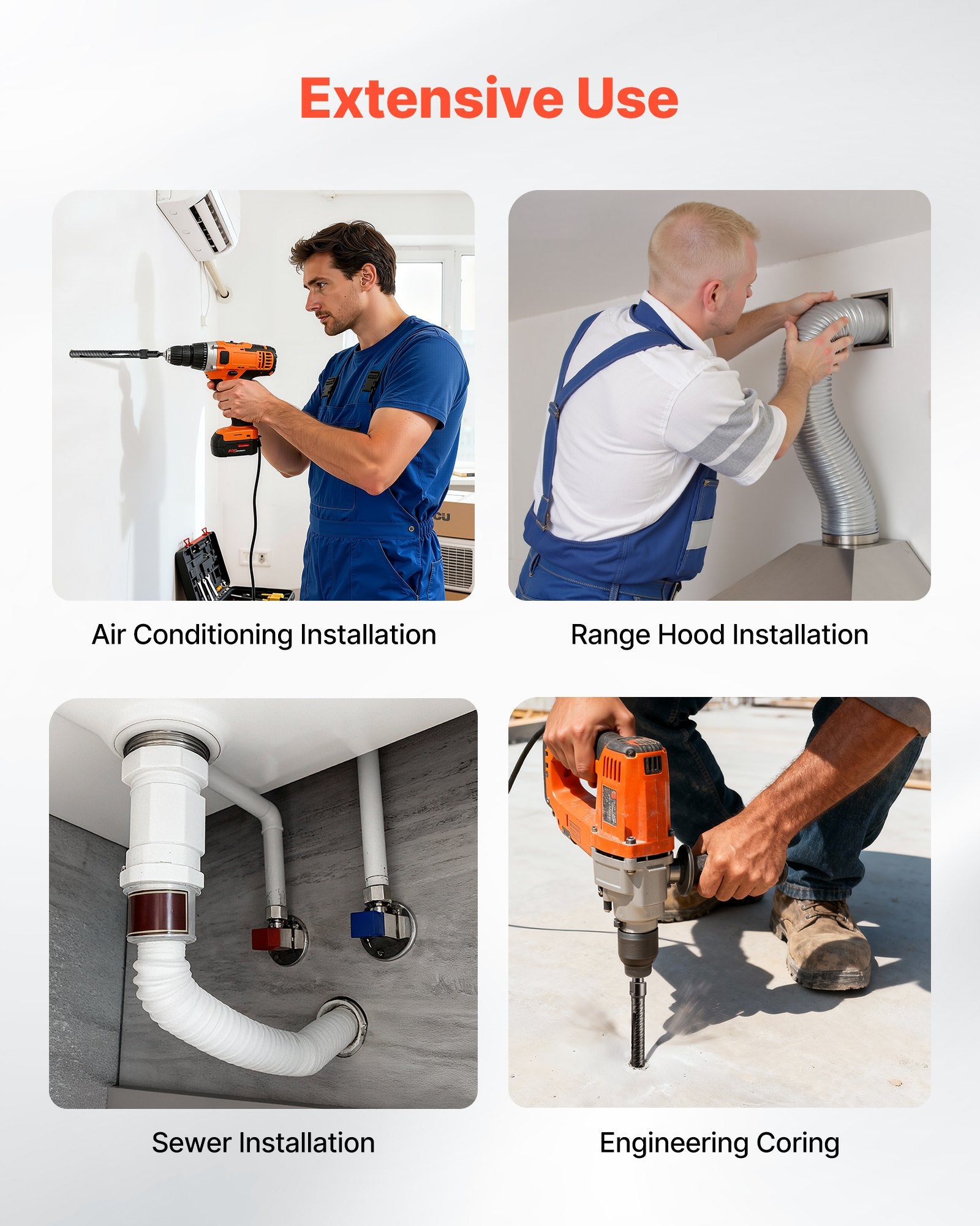 - Wide Application: Ideal for drilling through reinforced concrete, red brick, concrete, and foam brick. This core bit is commonly used in air conditioning installations, plumbing, stair railings, highways, airports, and various constructions