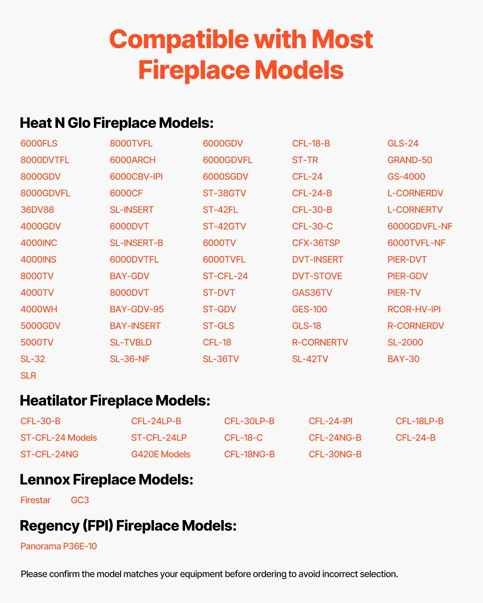 - Bred kompatibilitet: Denna gaspilottändningsenhet är kompatibel med de flesta vanliga eldstäder. Den passar inte bara eldstäderna Heat & Glo, Heatilator, Lennox och Regency, utan även varmvattenberedare och köksspisar.