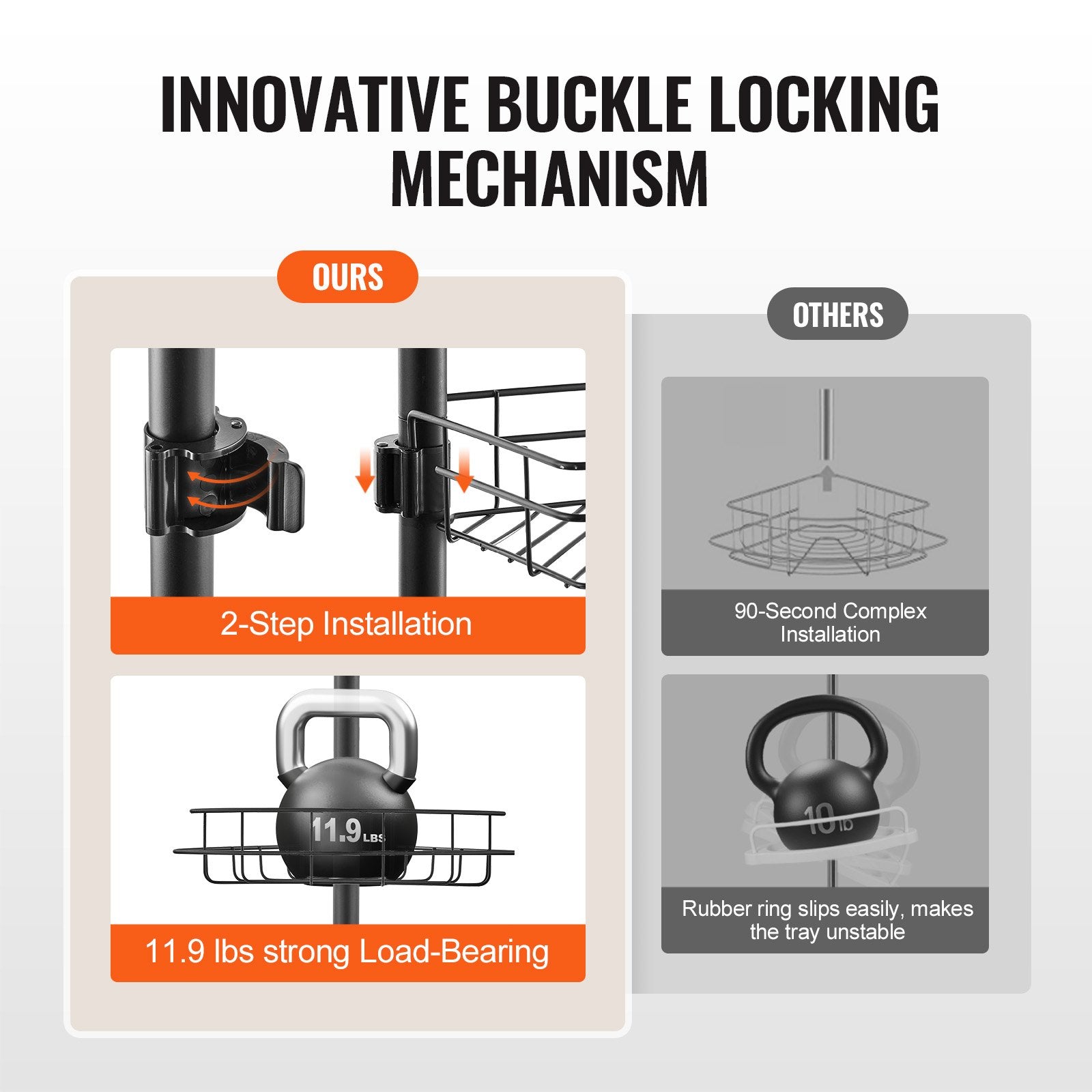 - Innovativ spänndesign: Spännstången för duschhörnan är utrustad med en innovativ spännlåsningsanordning som förenklar och stabiliserar installationsprocessen och effektivt förhindrar att brickan glider. Dess starka lastbärande bricka klarar enkelt upp till 5,4 kg tunga laster, vilket ger en säker plats för dig att använda.