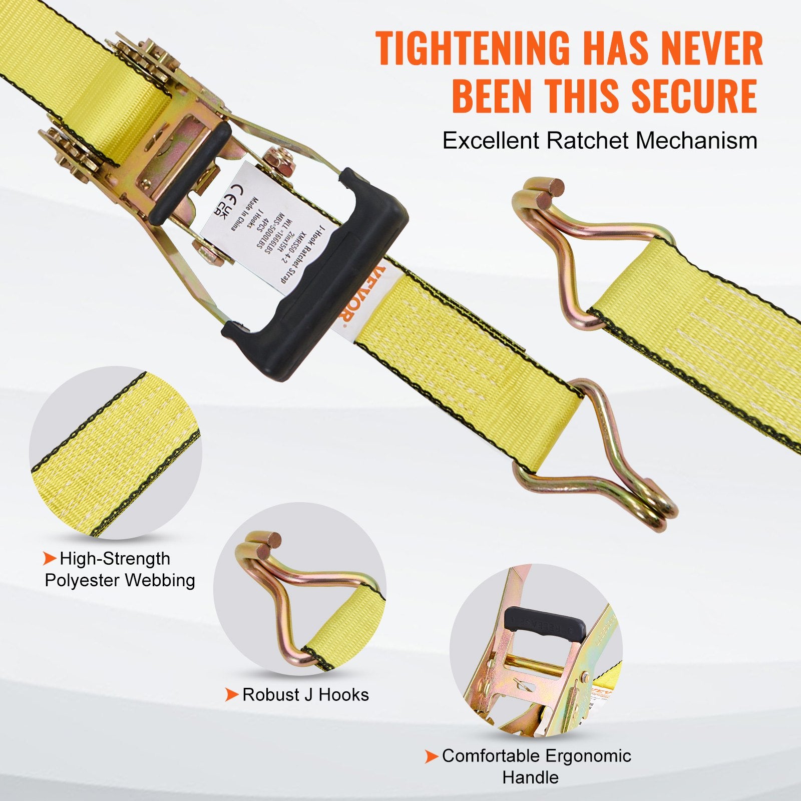 - Versatile Application: VEVOR ratchet straps provide durable and reliable security for transporting various small and large objects, including motorcycles, canoes, kayaks, ATVs, boxes, boats, furniture, lawn equipment, heavy machinery, and other cargo via truck beds, trailers, or roof racks.