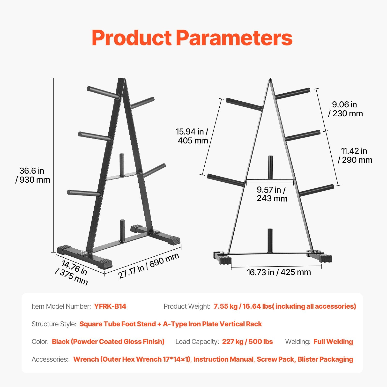 - Multifunktionellt skivstångsställ: En komplett förvaringslösning som rymmer viktskivor och även förvarar kettlebells. Denna praktiska design gör det enkelt att komma åt utrustningen och förbättrar användbarheten.