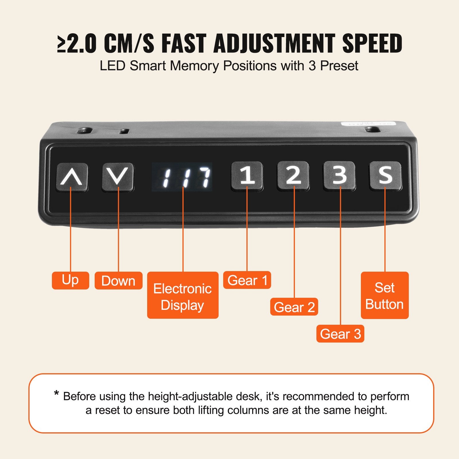 - Snabb höjdjustering: Upplev snabba övergångar med en lyfthastighet på ≥2,0 cm/s, kompletterad av en LED-styrenhet som kan memorera tre förinställda höjder för enkel växling mellan arbetslägen. Det intuitiva knappgränssnittet och USB-porten för laddning gör användningen till en barnlek.