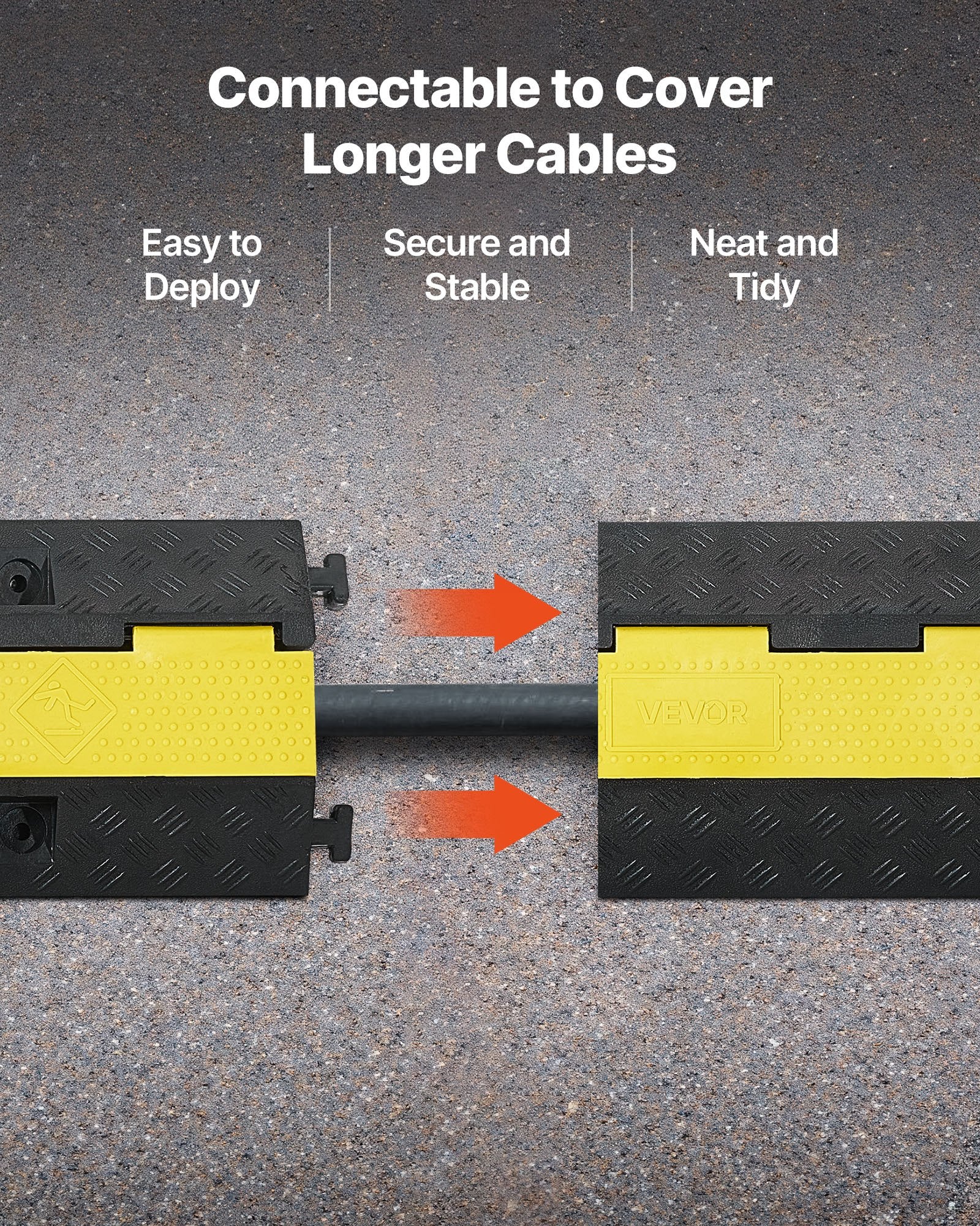 - Enkel installation: Detta golvsladdskydd har en stor kabelkanal och rymmer flera typer av kablar. Koppla ihop som byggstenar för snabb installation, sitter stadigt på plats samtidigt som allt är snyggt och organiserat.