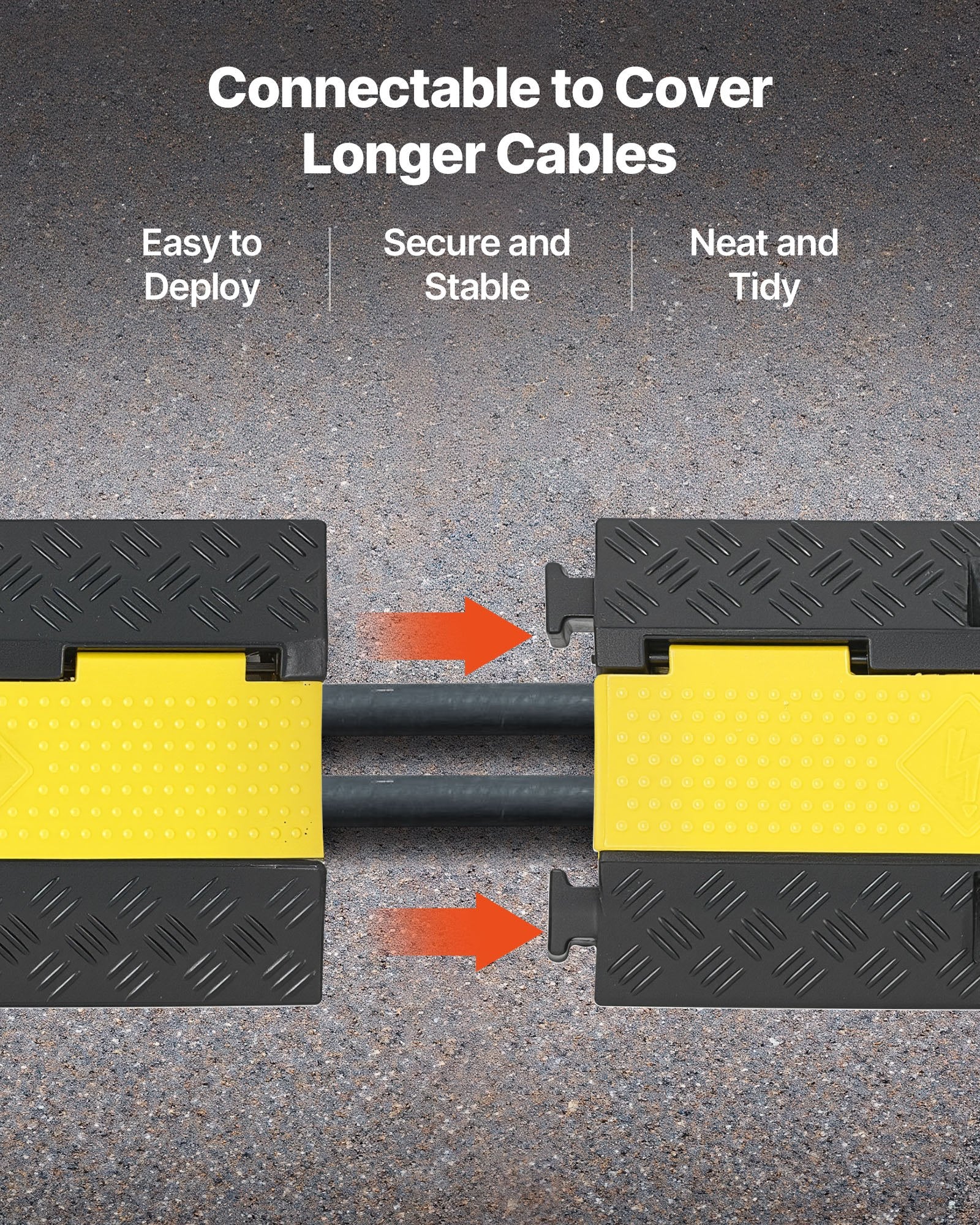 - Snabb kabeldragning: Öppna bara det övre locket för att snabbt dra dina kablar. Du behöver inte demontera eller sakta ner installationen. Vår kabelskyddsramp är idealisk för byggprojekt, sportevenemang, mässor, konserter och festivaler.