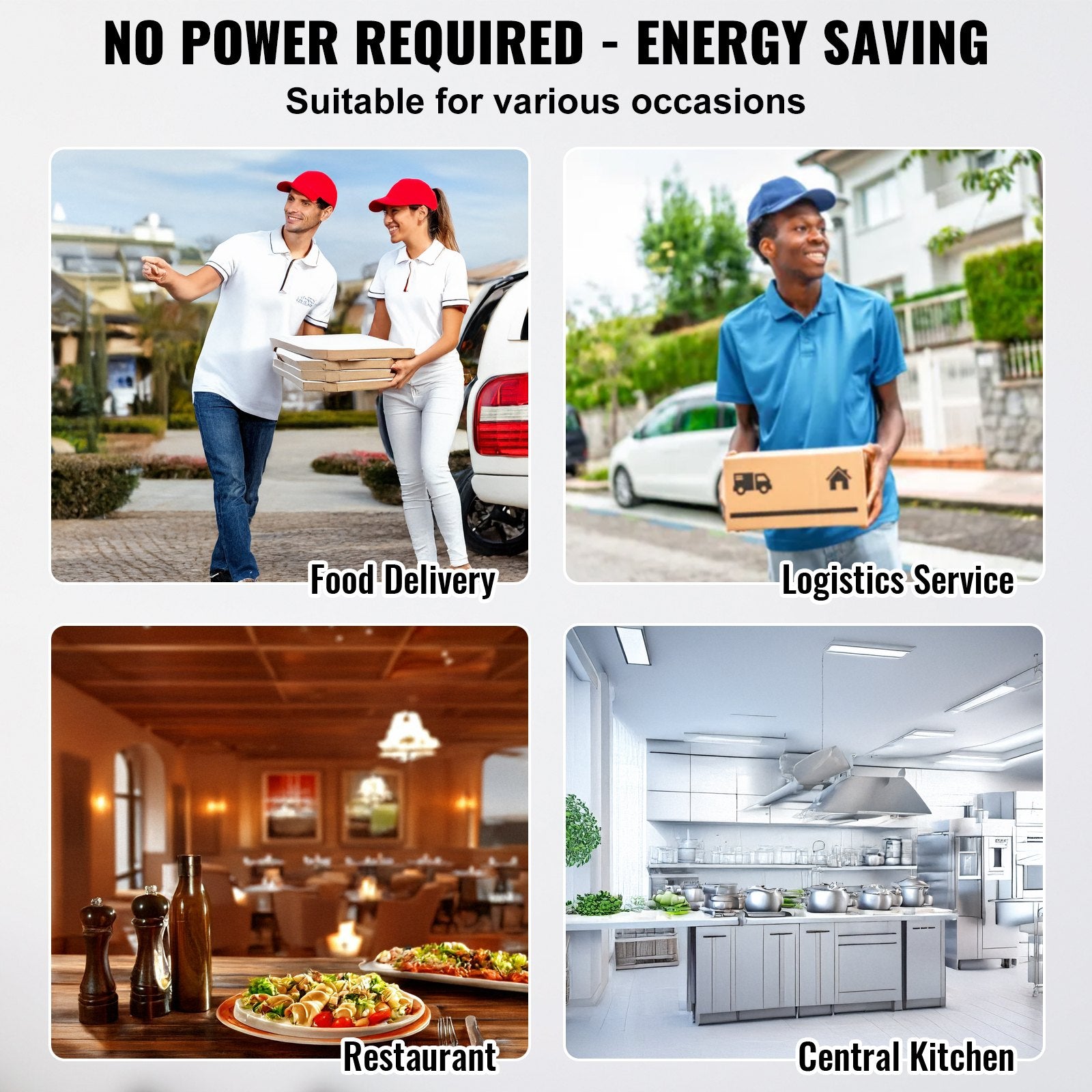 - Genomtänkta detaljer: Genomtänkta designer kombineras på vår matvärmare för catering. De övre och nedre nylonspärrarna gör att dörren stängs ordentligt och låser temperaturen inuti. Den integrerade dörraxeln kan öppnas 270 grader, utan att behöva luta mattallrikarna när du tar ut dem. Interiören är jämnt uppdelad, vilket gör det bekvämt att placera flera kastruller. Dessutom kan du markera mattypen med menyfacket och minska hur ofta du öppnar dörren.