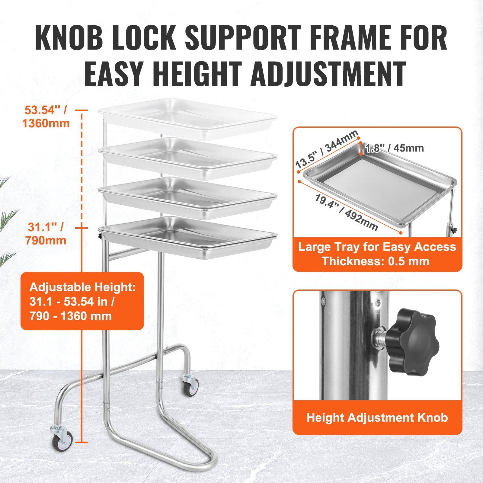 - Enkel justerbarhet: Vår labbvagn justeras enkelt med en vredlåsdesign för att passa olika arbetspositioner, oavsett om de står eller sitter, vilket ger optimalt ergonomiskt stöd.