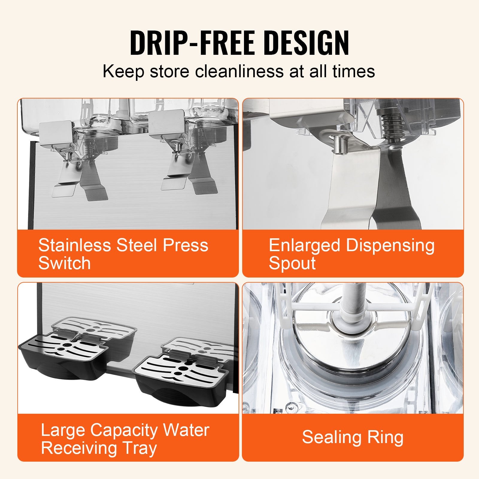 Kommersiell dryckesdispenser, 2 tankar 18 l juicedispenser per tank, 370 W istemaskin i rostfritt stål med kyltemperatur på 45°F-54°F, för kalla drycker, restaurangbarfester