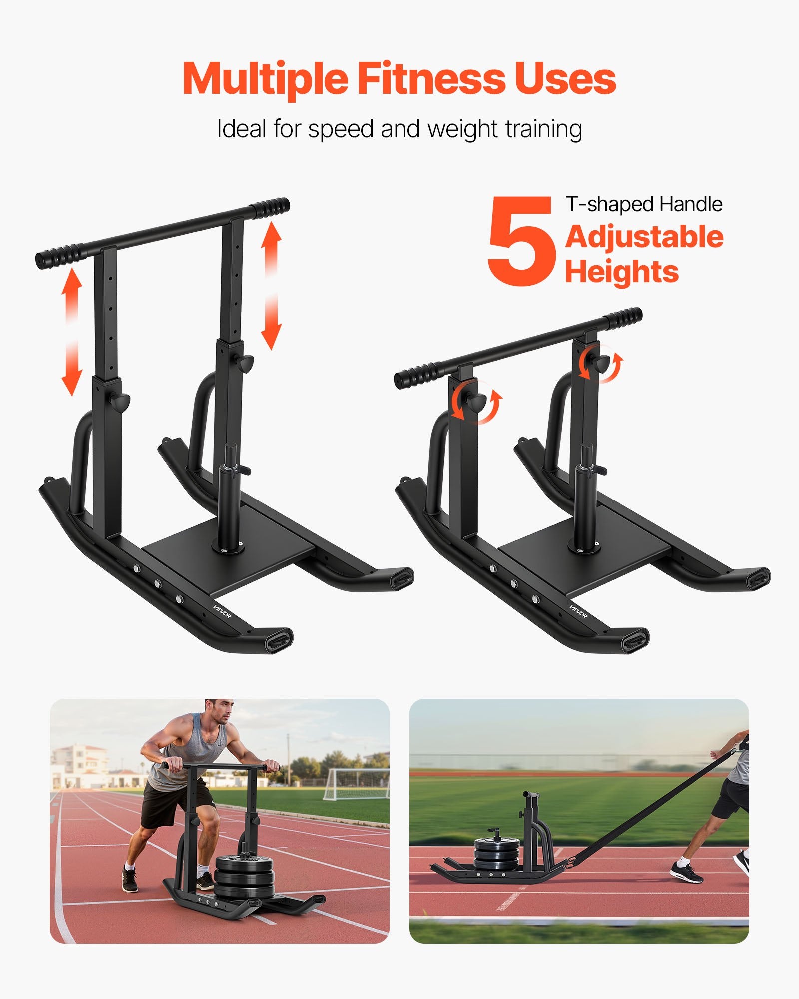 Viktsläde, Stålkraftsläde, Fitnessträningsslädar för atletisk träning, hastighetsförbättring, Träningsutrustning med justerbart höjdhandtag, Kompatibel med 25/51 mm viktskivor, Svart