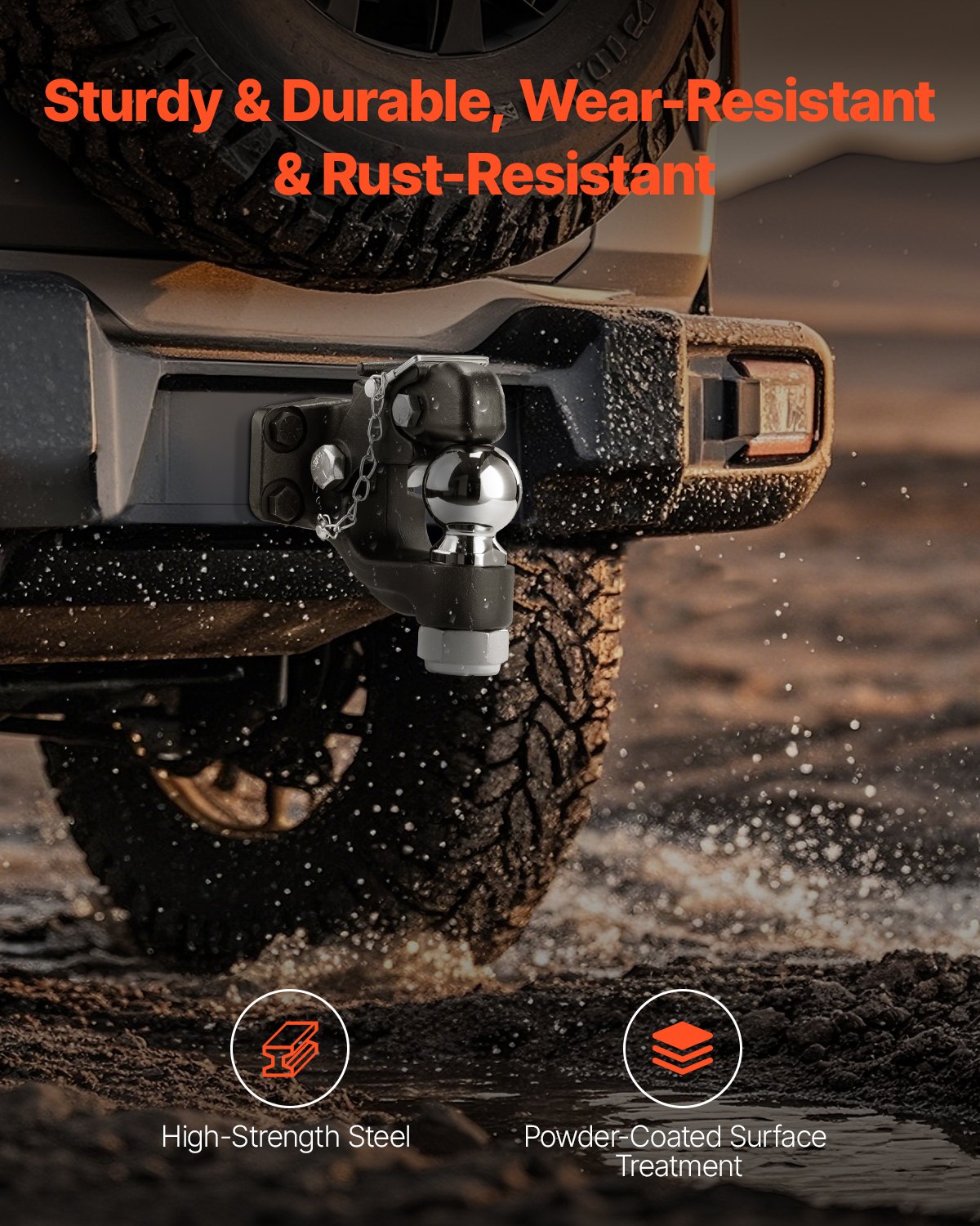 - Hög lastkapacitet: Vårt dragkrok stöder bogseringsvikter på upp till 13 000 kg, med en vertikal lastkapacitet på 2 700 kg. Den har en dragkulstorlek på 6,35 mm och kan anslutas till lunettringar på 6,35–7,5 cm, vilket gör det enkelt att transportera tung utrustning och last.