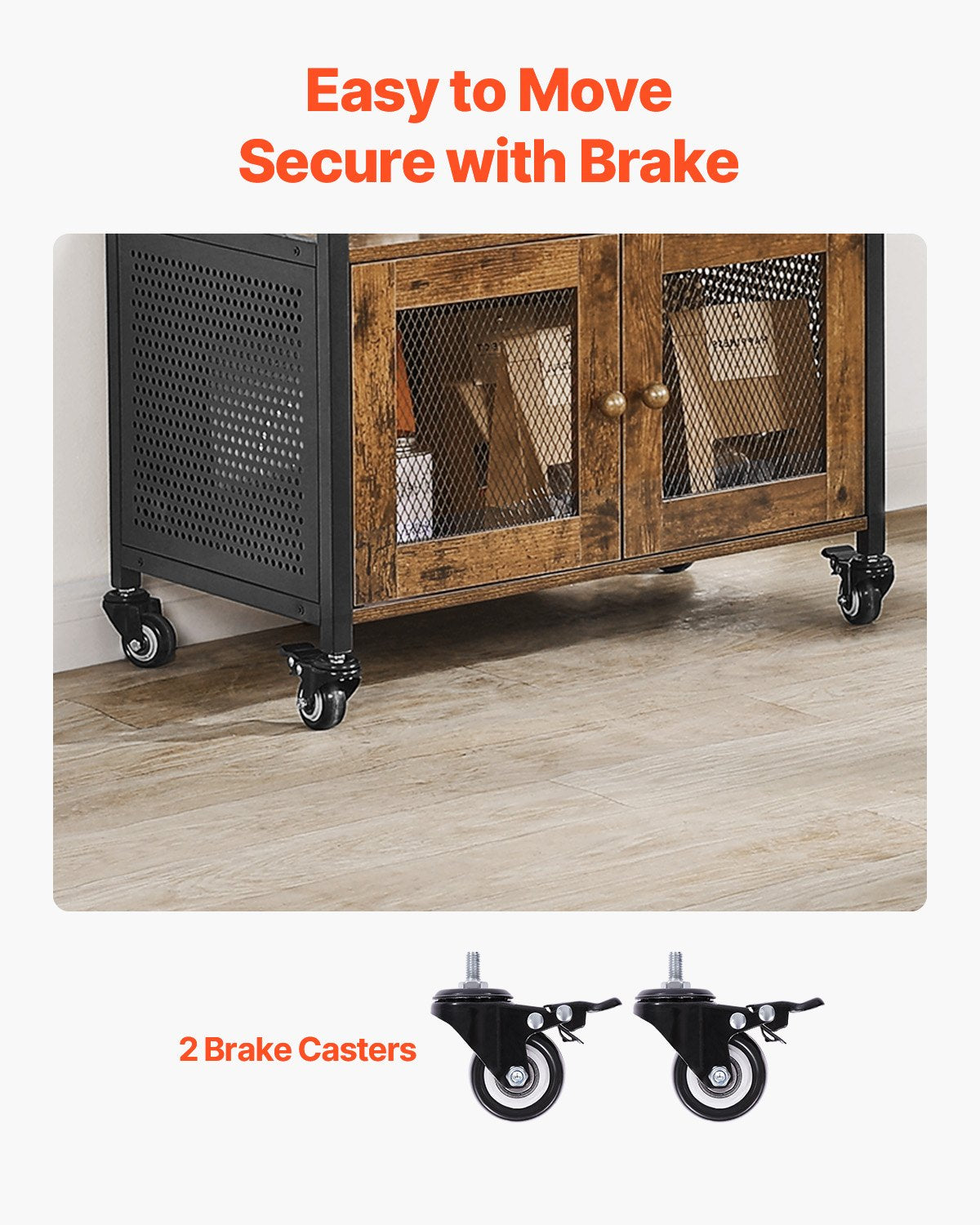 - Easy Setup & Use: Assembling this coffee station cabinet is simple, with clear instructions and labeled parts. It features smooth, silent wheels for easy movement and floor protection, with two lockable wheels to keep it in place. The mesh doors provide visibility for easy access to your items.