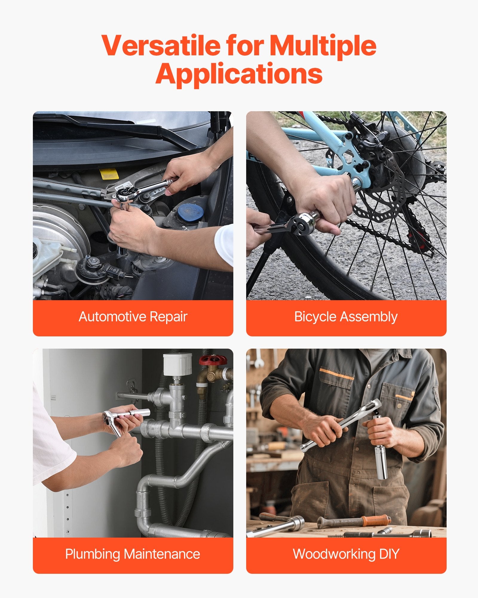 - Mångsidiga användningsområden: Denna mekaniska verktygssats är mycket mångsidig, perfekt för bilreparationer, cykelmontering, VVS, träbearbetning och gör-det-själv-projekt, och hanterar enkelt dagligt underhåll, hemuppgifter och professionella jobb.
