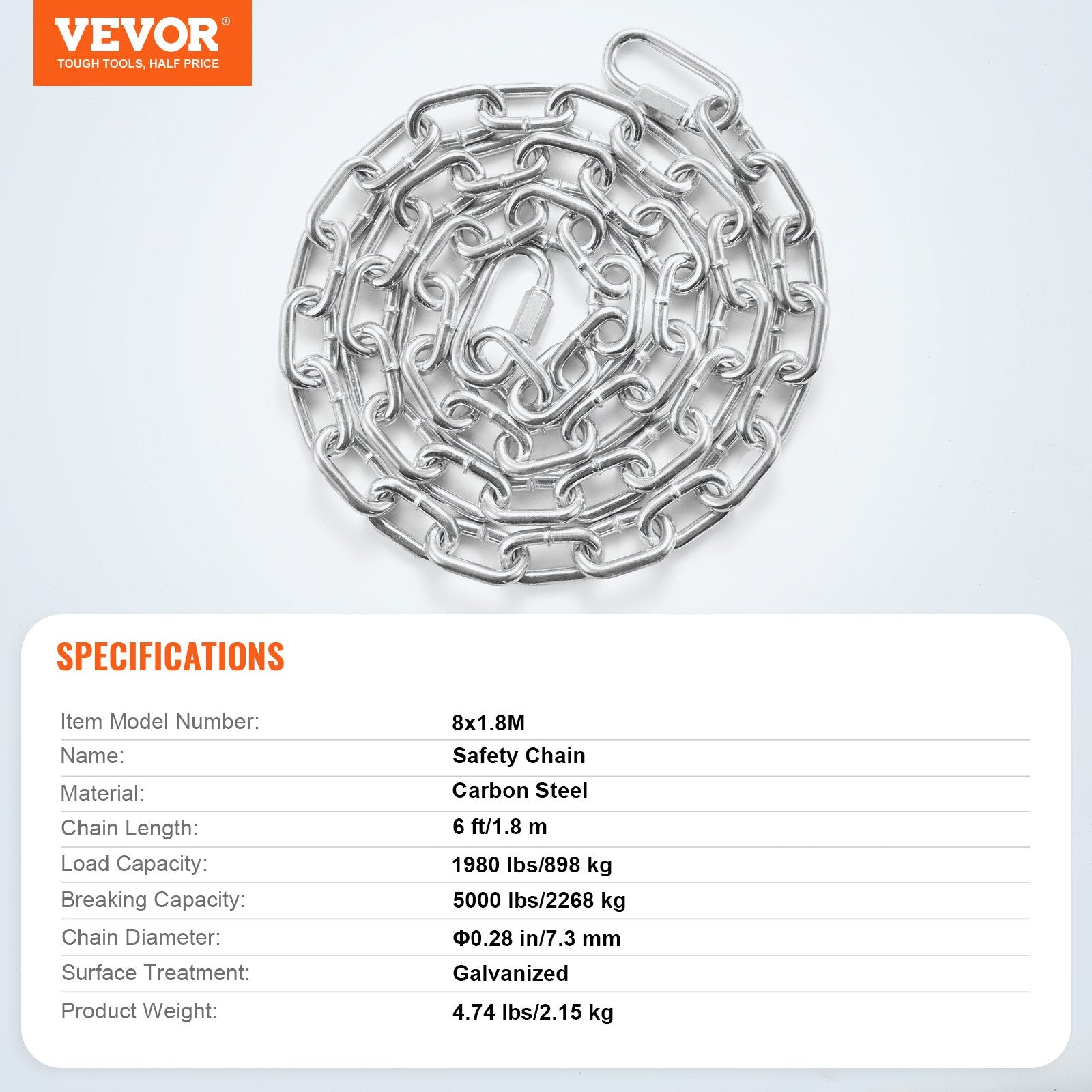 - Perfekt för utomhusäventyr: Denna zinkpläterade spiralkedja fungerar inte bara inomhus – den är stänkskyddad och redo för utomhusbruk. Från att dra ved till att hänga lampor, säkra kläder eller till och med hålla din hund säker, är den mångsidig nog för vad livet än kastar din väg.