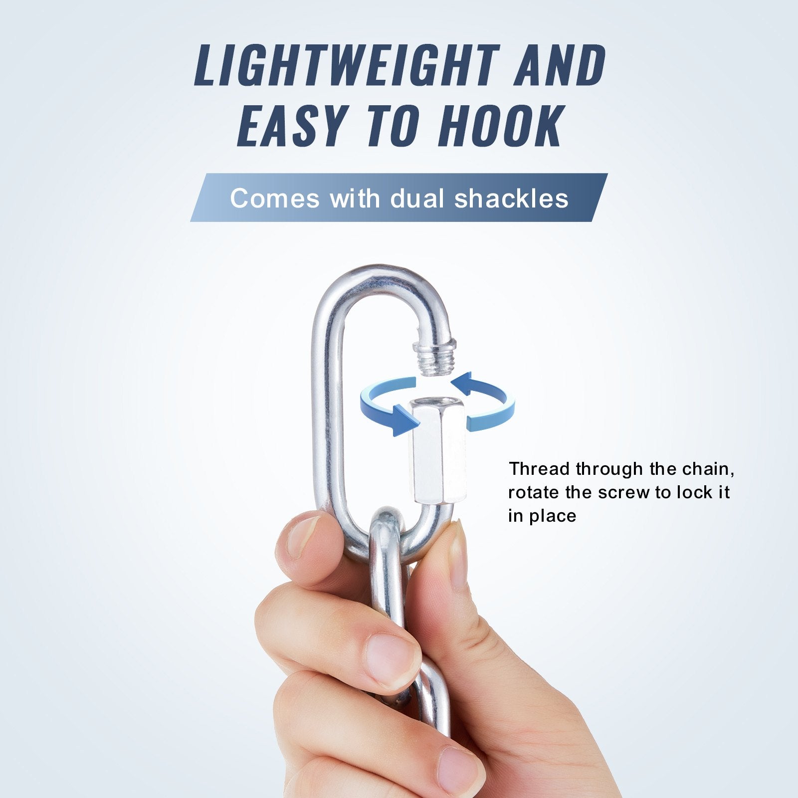 - Perfekt för utomhusäventyr: Denna zinkpläterade spiralkedja fungerar inte bara inomhus – den är stänkskyddad och redo för utomhusbruk. Från att dra ved till att hänga lampor, säkra kläder eller till och med hålla din hund säker, är den mångsidig nog för vad livet än kastar din väg.