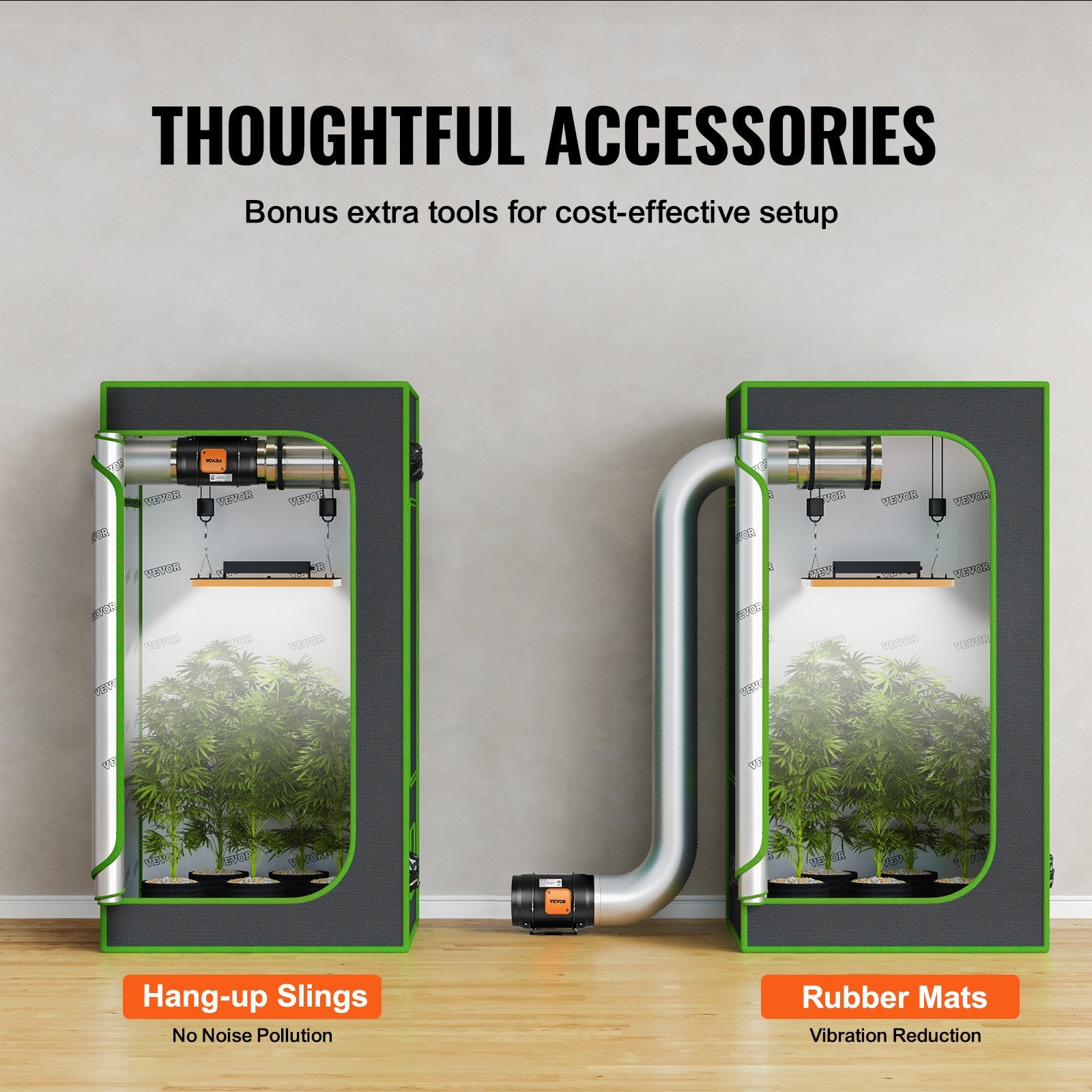 - Universella användningsområden: Ta ett djupt andetag och slappna av. Vår inline-kanalfläkt är specialdesignad som ett utlopp för värme, fuktighet och rök, vilket förbättrar luftflödet i luftplanteringstält, hydroponiska planteringsrum, rum för elektronisk utrustning, kök, källare etc. Gör dig redo att följa med strömmen. Luftvolym: 860 m³/h (506,2 CFM) ±10 %. Hastighet: 2150 RPM ±10 %