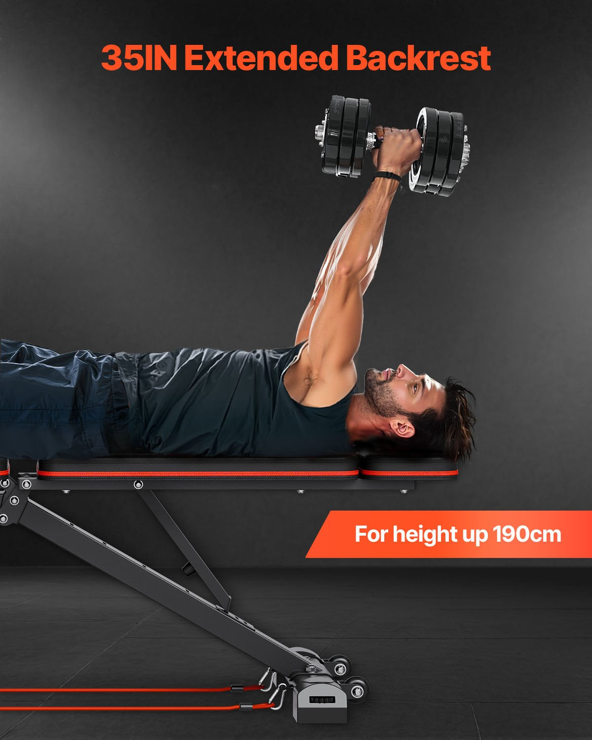 - Förlängt ryggstöd för ökad komfort: Det 94 cm långa ergonomiska ryggstödet ger komfort och skydd för ryggraden, vilket garanterar en behaglig upplevelse under alla dina träningspass.