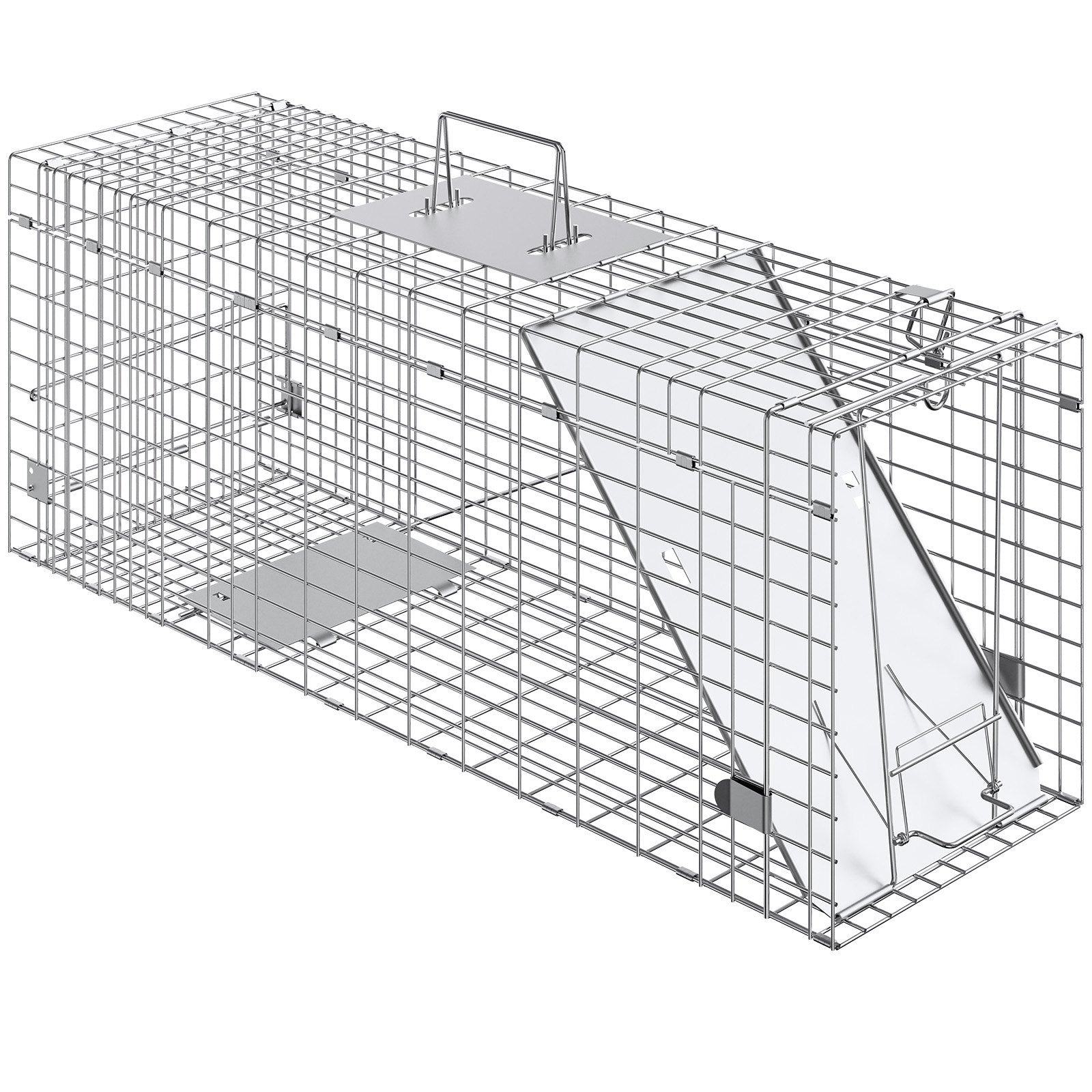Fälla för levande djur, 79 x 25 x 30,5 cm human kattfälla i galvaniserat järn, hopfällbar djurfälla med handtag för kaniner, herrelösa katter, ekorrar, tvättbjörnar, murmeldjur och opossum