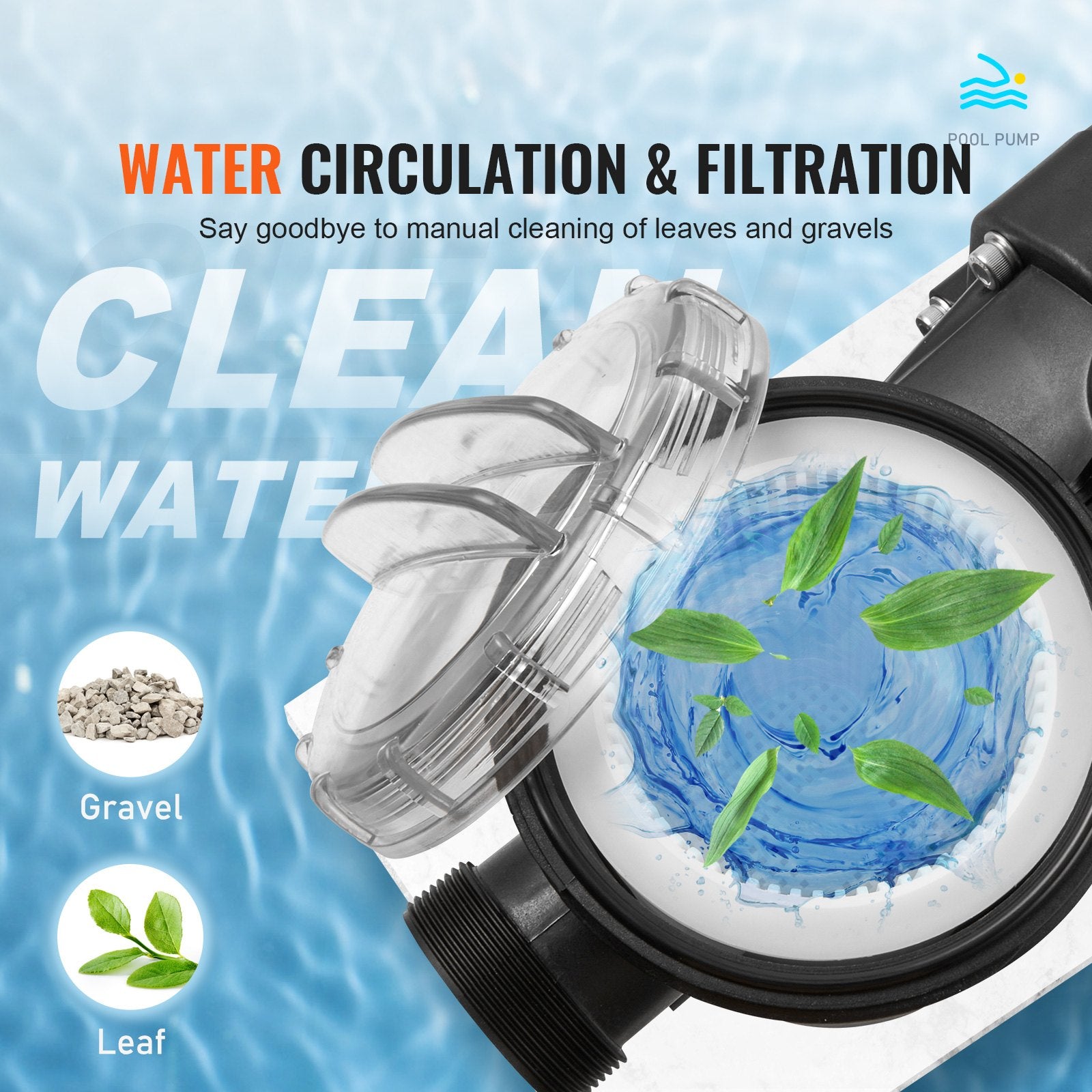 - Effektivt vattencirkulationssystem: Med ett maximalt vattenflöde på 100 GPM och en maximal lyfthöjd på 15 m säkerställer vår poolpump snabb vattencirkulation. Dess avtagbara filterkorg, kompatibel med ett sandfilter (ingår ej), underlättar fysisk rening och håller ditt poolvatten kristallklart. PVC-överdraget gör att du kan övervaka exakt när korgen behöver rengöras. Njut av konsekvent rena poolbottnar varje gång!