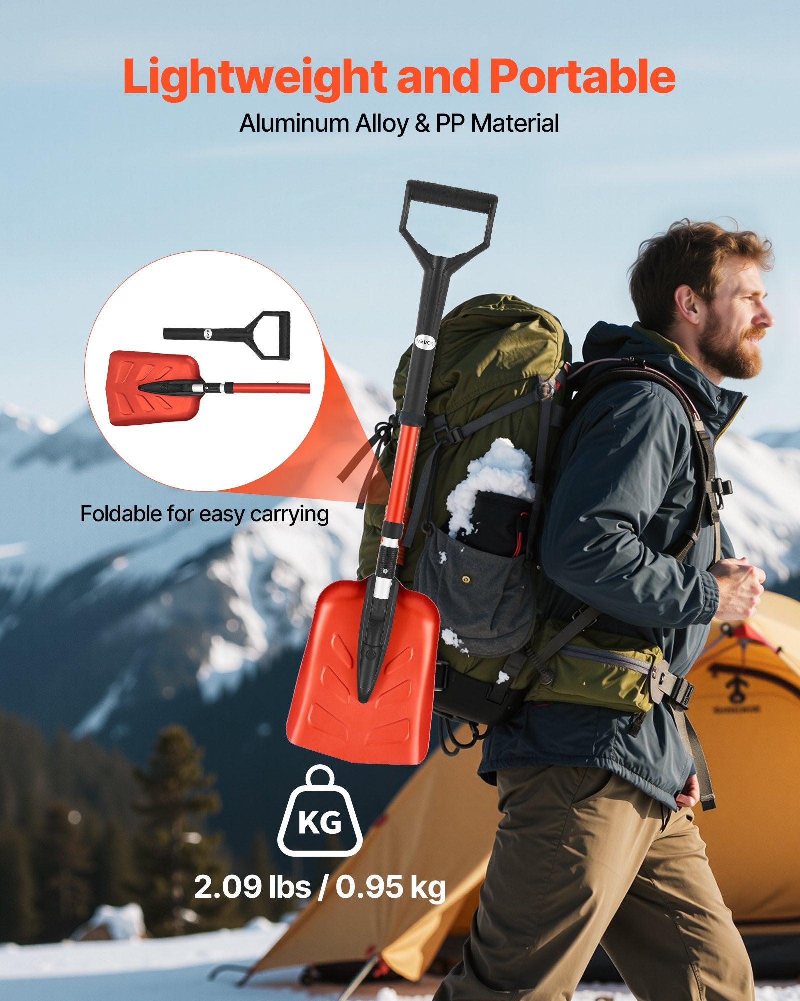 - Effektiv snöskottning: Tillverkad av aluminiumlegering, röjer denna snöskyffel för uppfarter snabbt snö i trånga utrymmen. Perfekt för bilfronter, trappor, camping eller snögubbar, den uppfyller både hemma- och resebehov, vilket gör den till ett praktiskt nödverktyg.