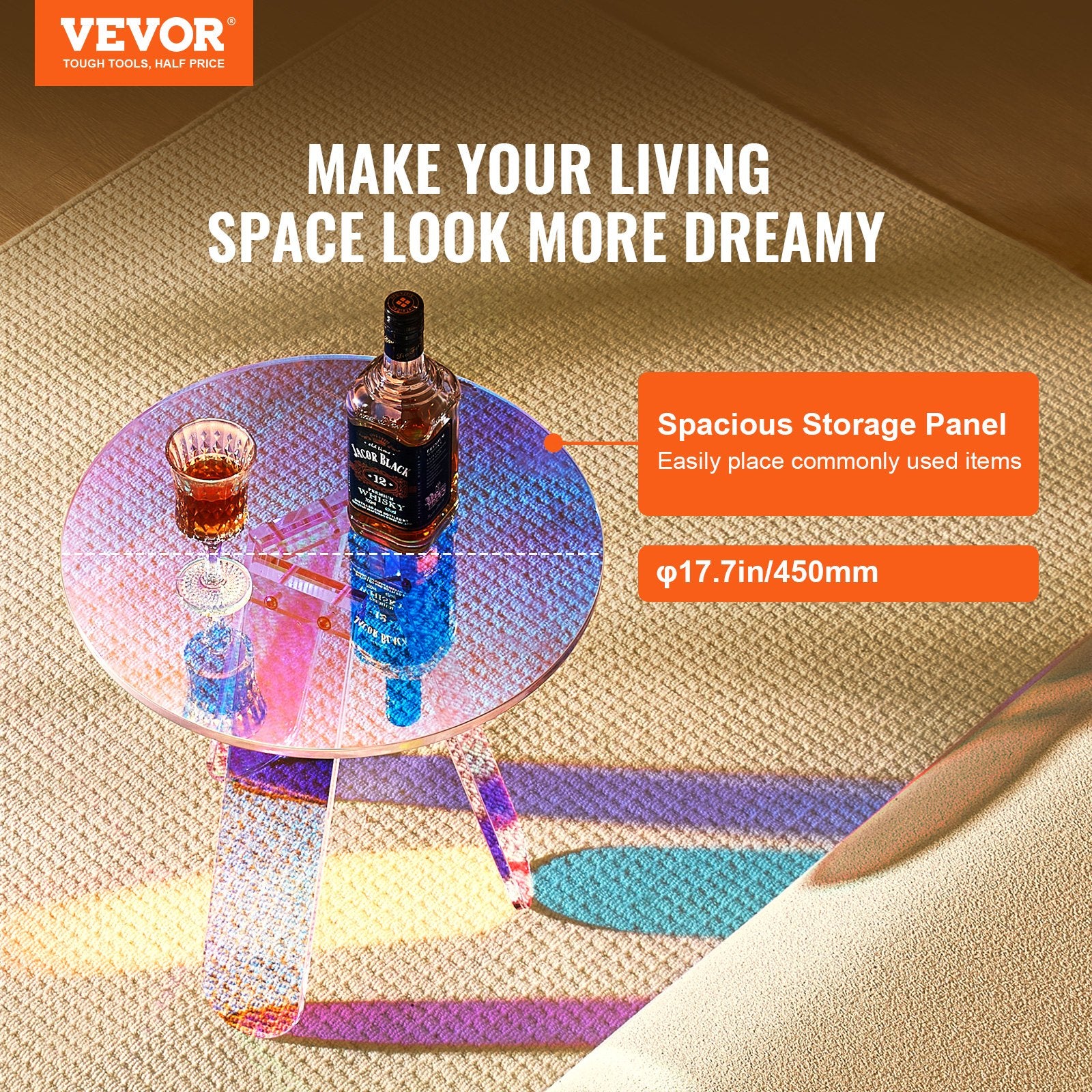 Runt skimrande sidobord, akrylsockbord, klart regnbågsfärgat akrylsockbord för dryck, mat, snacks som används i vardagsrum, sovrum och arbetsrum