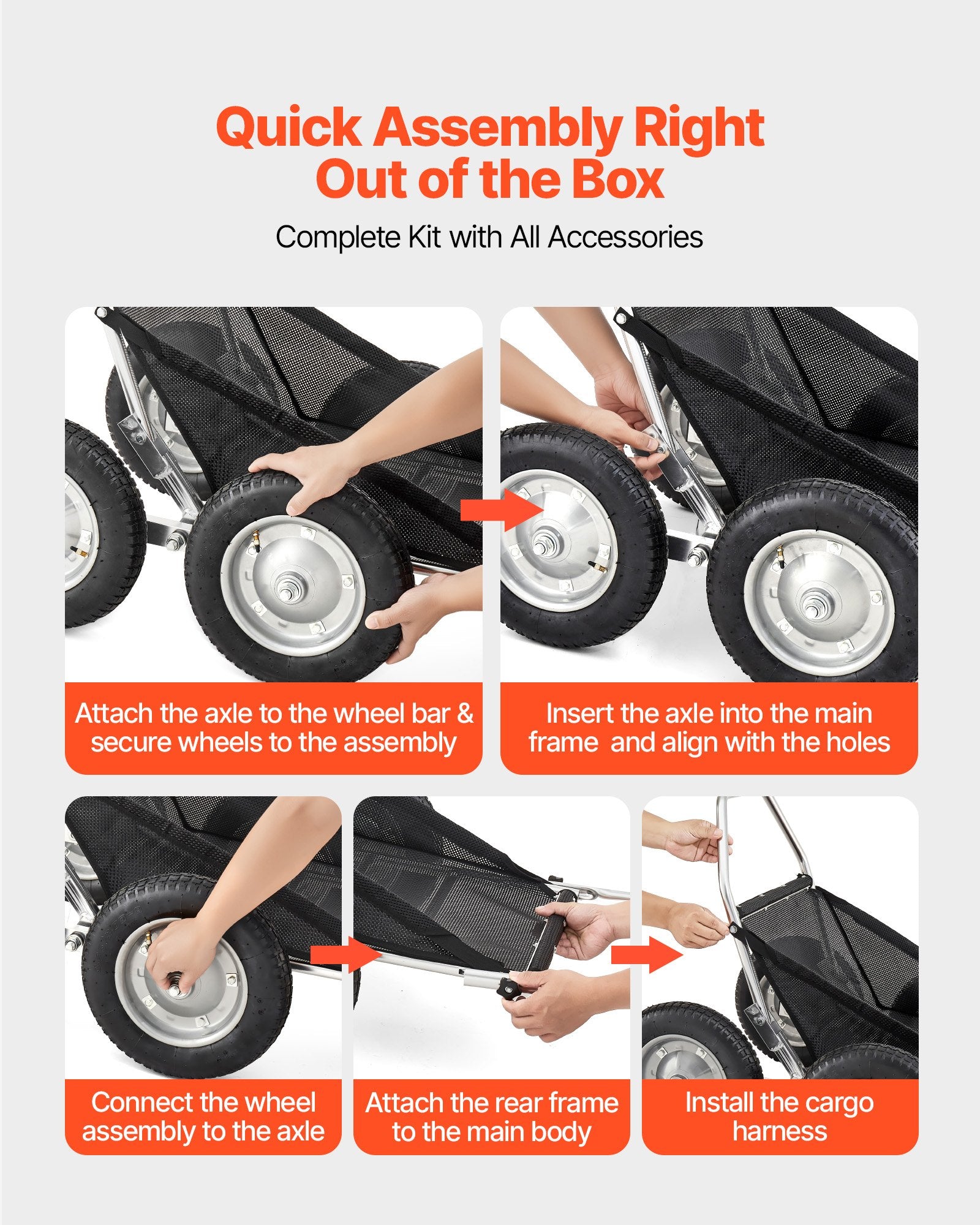 - Rymligt lastutrymme: Räcket på vår hjortvagn är tillverkat av slitstarkt nylontyg och mäter 920 x 450 mm. Tillsammans med ett förlängt handtag på 449,58 x 825 mm gör det att det går lätt att dra utan att böja sig.