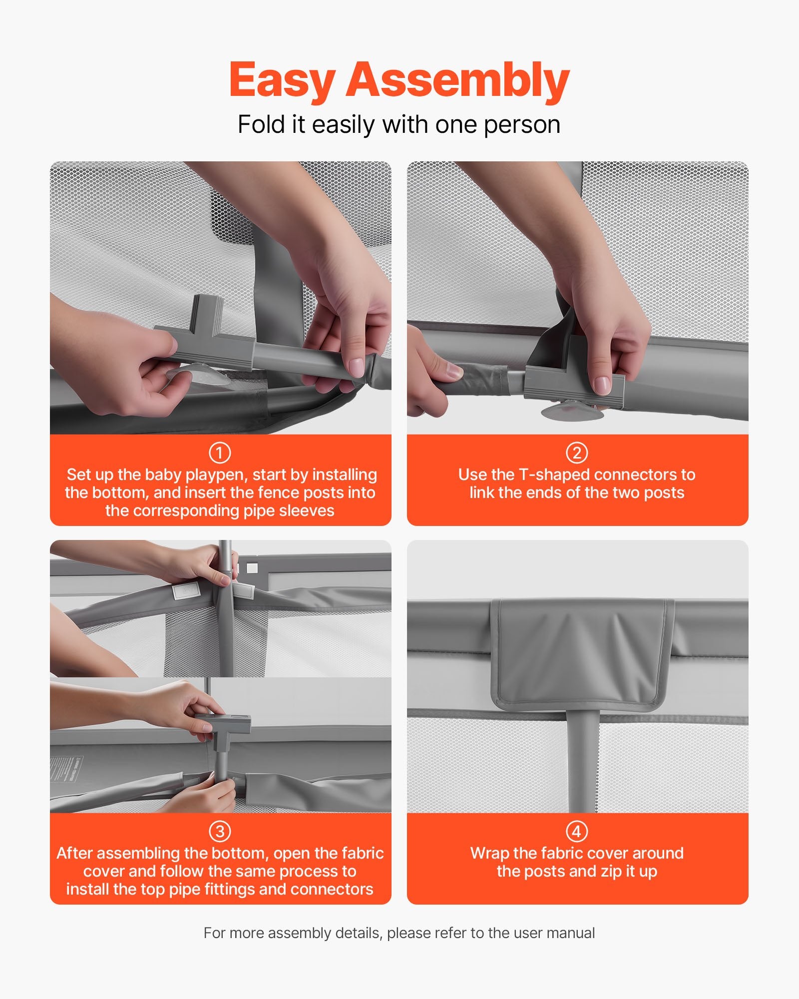 - Easy Setup & Storage: Quick to assemble by one person, this VEVOR play fence for babies and toddlers also comes with a storage bag for easy carrying and compact storage when not in use—saving space and adding convenience