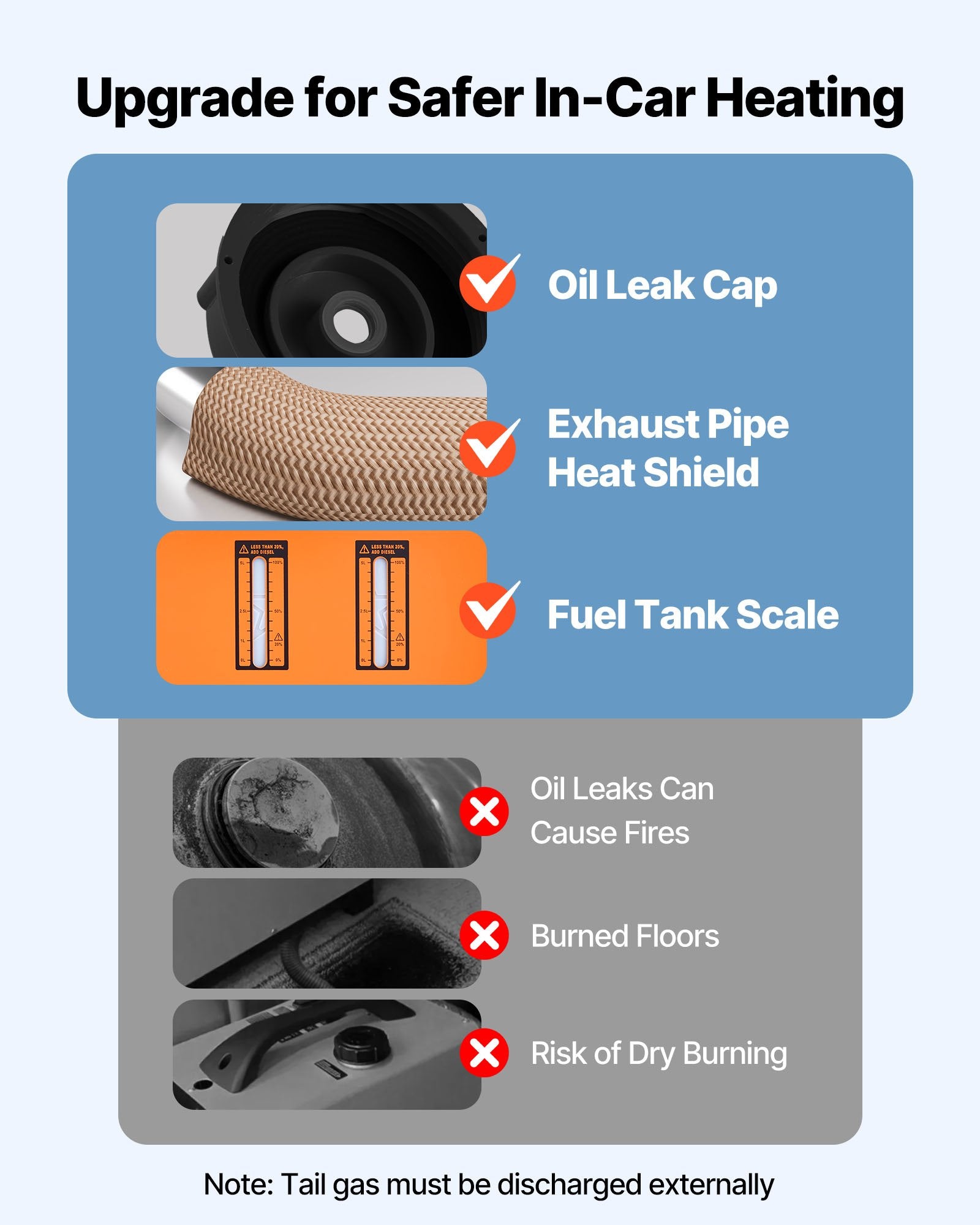 - Wide Applicability: The diesel parking heater works effectively at altitudes under 9843ft. Compact and easy to install, it provides continuous warmth in high-altitude or cold environments, ensuring comfort no matter where you are