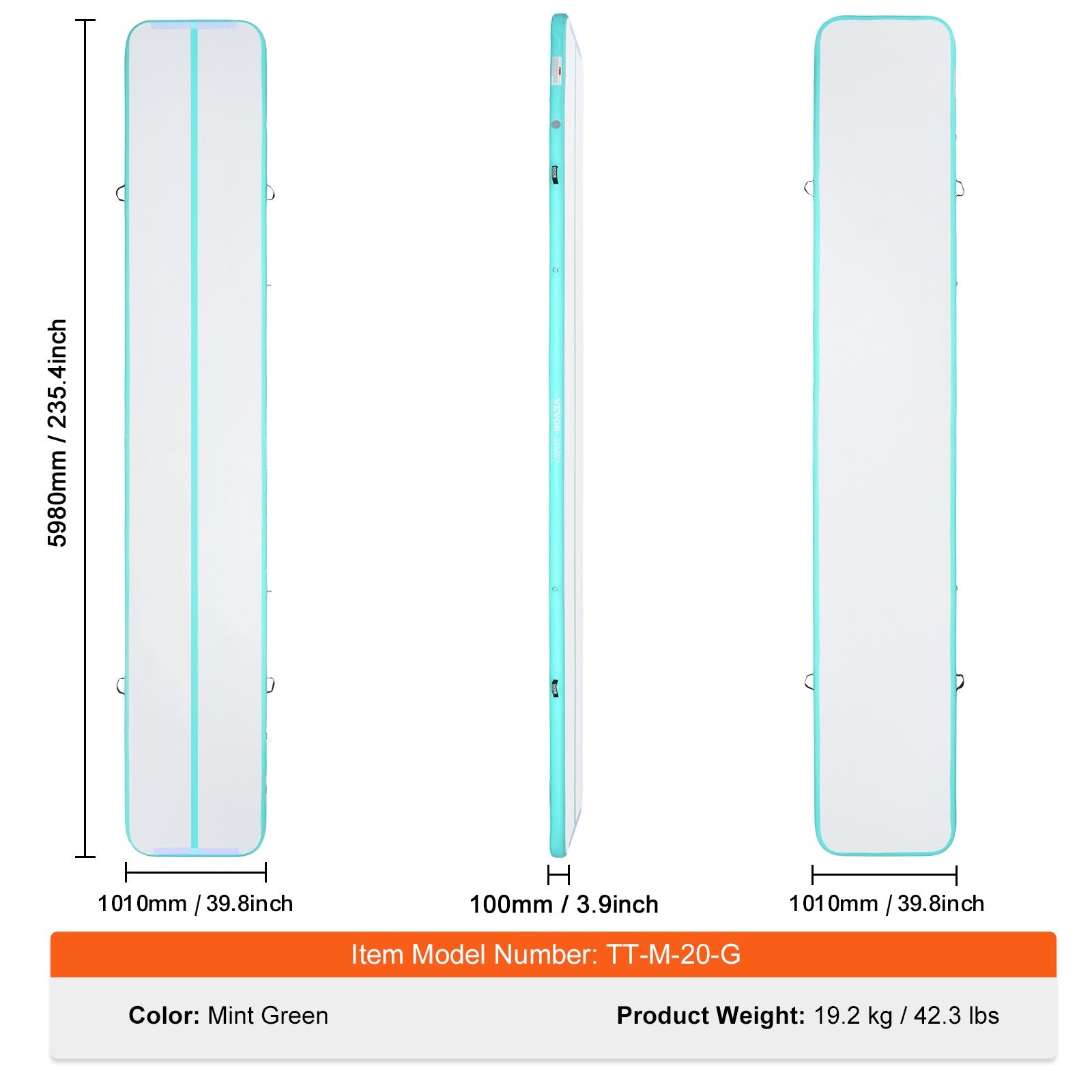 6,1 m uppblåsbar gymnastikmatta med pump för tumbling och airtrack
