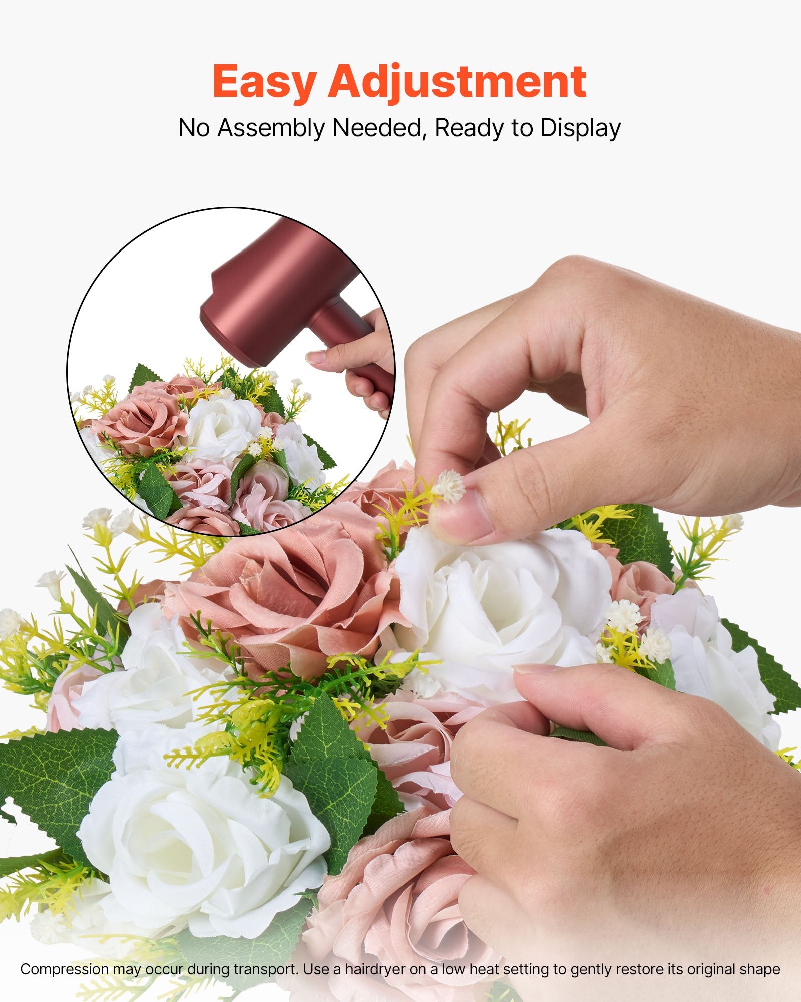 - Klar att visas: Varje set blommor för bordsdekorationer innehåller 10 halvsfäriska konstgjorda blombollar med stabila baser. Arrangera dem direkt på bord, vaser eller stativ – inga verktyg behövs. OBS: Små färgvariationer kan förekomma på grund av fotograferingsbelysning eller skärmvisning.