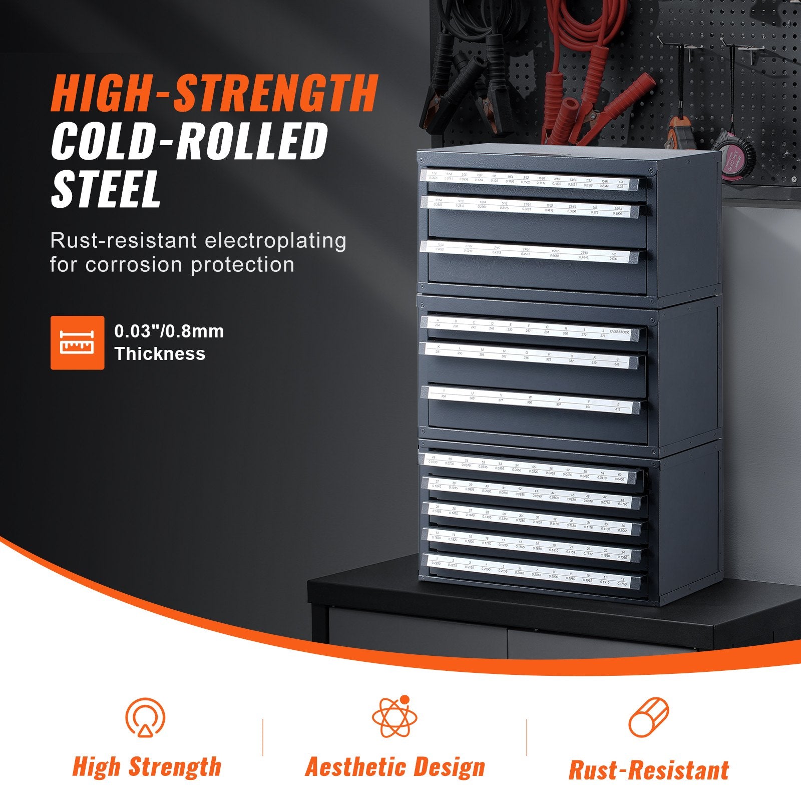 Borrbitsdispenserskåp, 3 delar med tre lådor för brevstorlekar A till Ö, borrbitsorganisatör med fem lådor för trådtjocklek #1 till #60, stapelbar för borrbitsförvaring