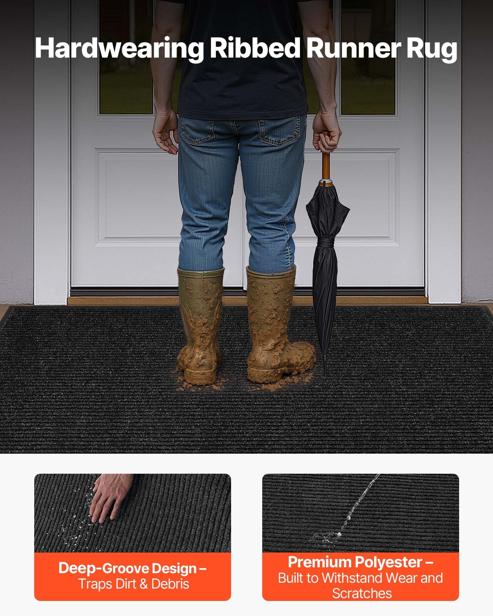 - Långvarig yta: Dörrmattan har en randig 3D-spårdesign som ökar friktionen och är slitstark. Den skrapar effektivt bort smuts, fångar damm och håller golven rena och torra.