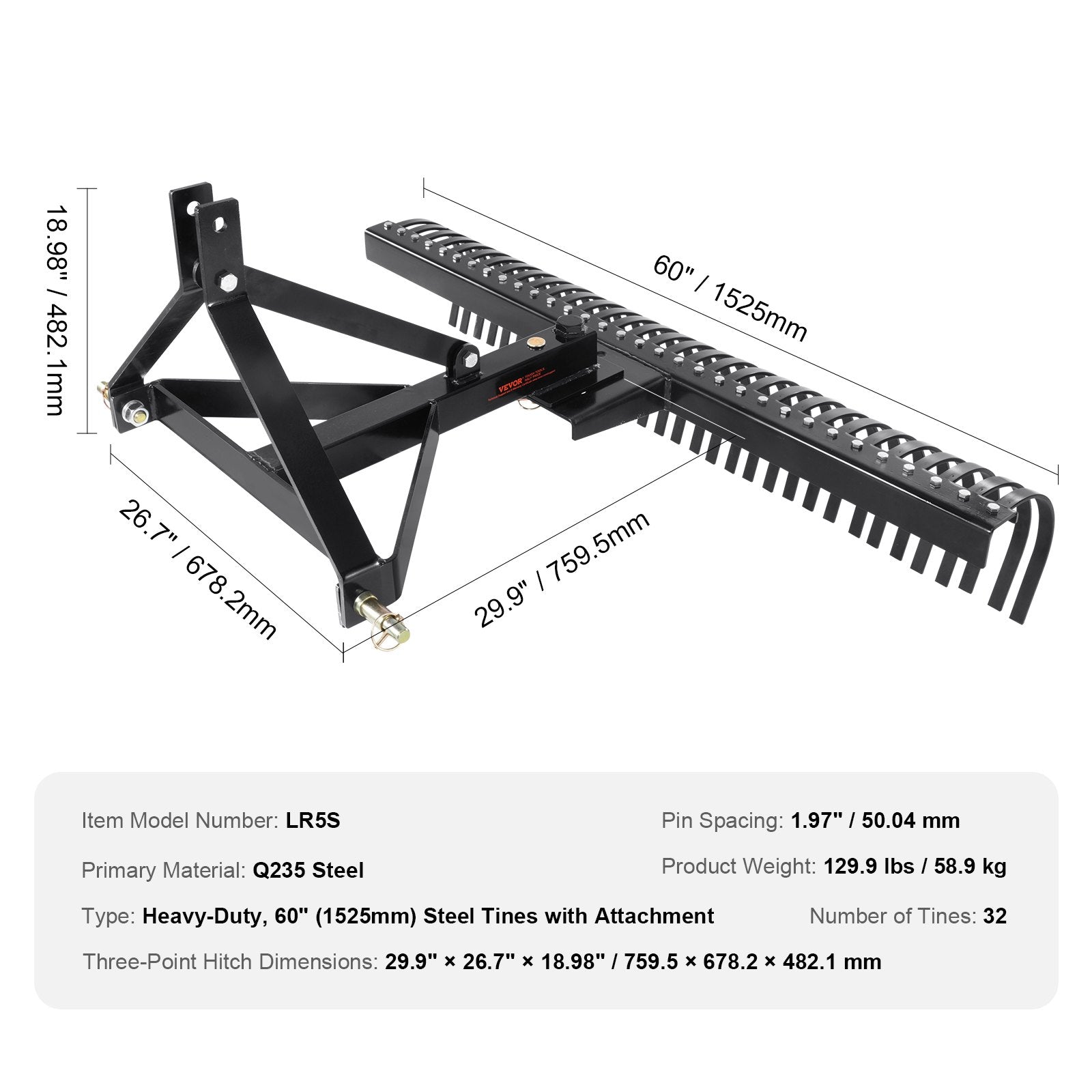 Bogsera bakom vertikalskärare 60"/152,4 cm 3-punkts vertikalskärare med tillbehör