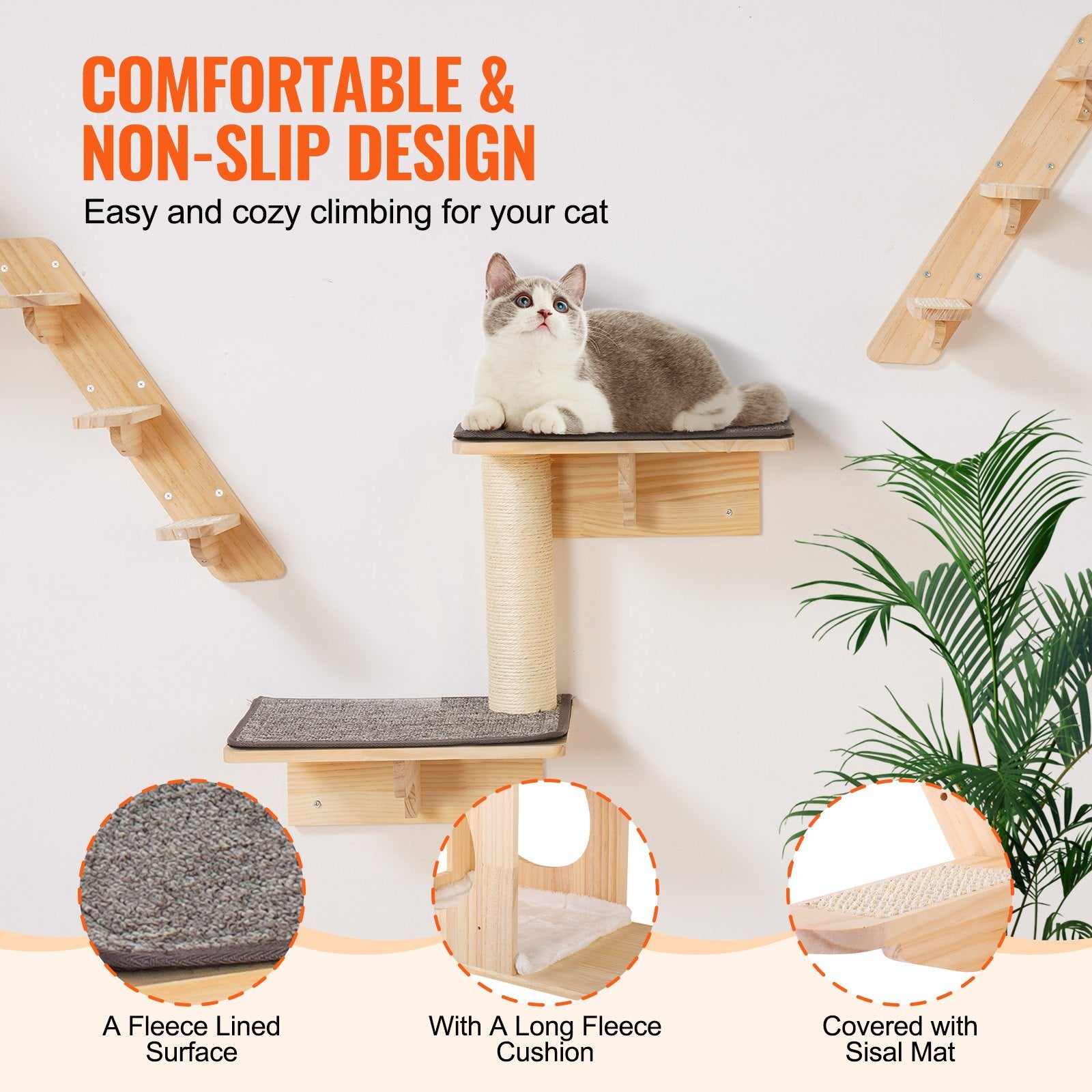 - Omfattande tillbehör: Väggmöbelsetet för katt levereras med metallskruvar, expansionsrör, fjärilskruvmejsel, en skruvmejsel, en T-formad sexkantsskruvmejsel och ett installationsschema för problemfri montering på olika väggtyper.