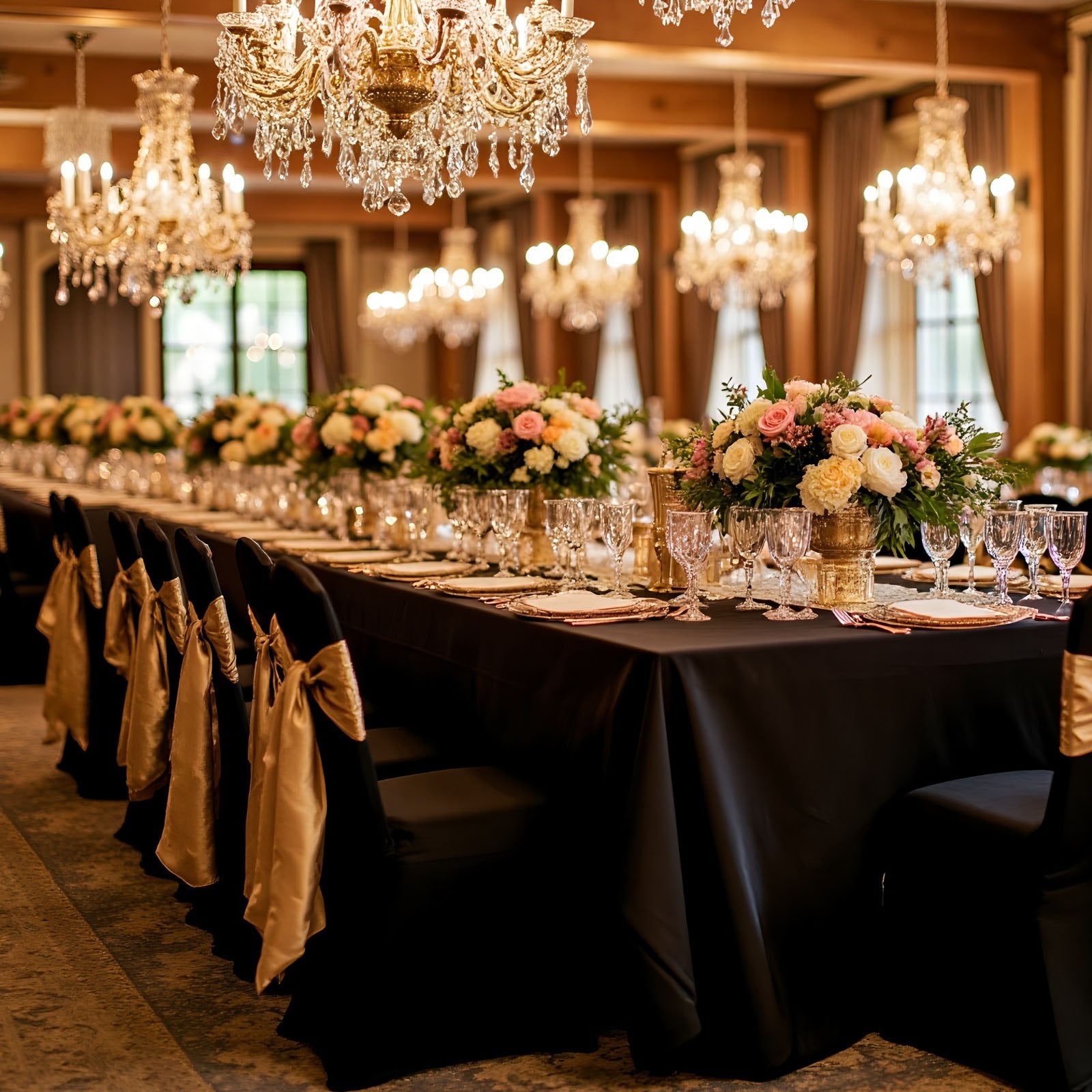 - Skydd och dekoration: Stolsöverdragen i spandex är mer elastiska, töjbara och skrynkelbeständiga, med minskad genomskinlighet. Fyra elastiska fickor längst ner används för att placera stolsben. Stolsöverdragsskydden håller dem säkert på plats och ger ett heltäckande skydd för dina stolar. Dessutom bidrar de robusta fickstöden till att förlänga överdragens livslängd, vilket gör dem perfekta för upprepad användning och motståndskraftiga mot revor.